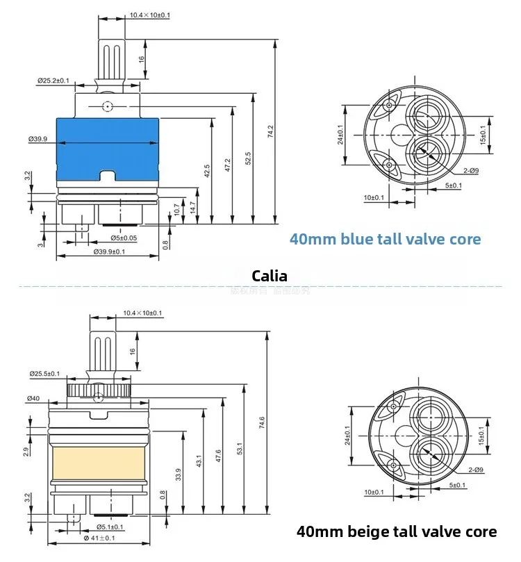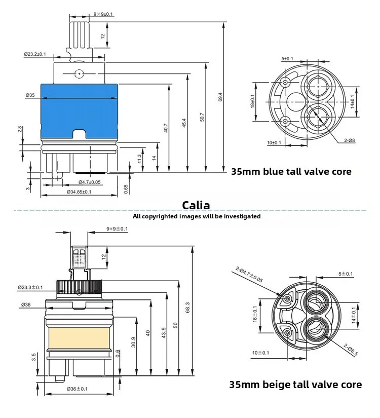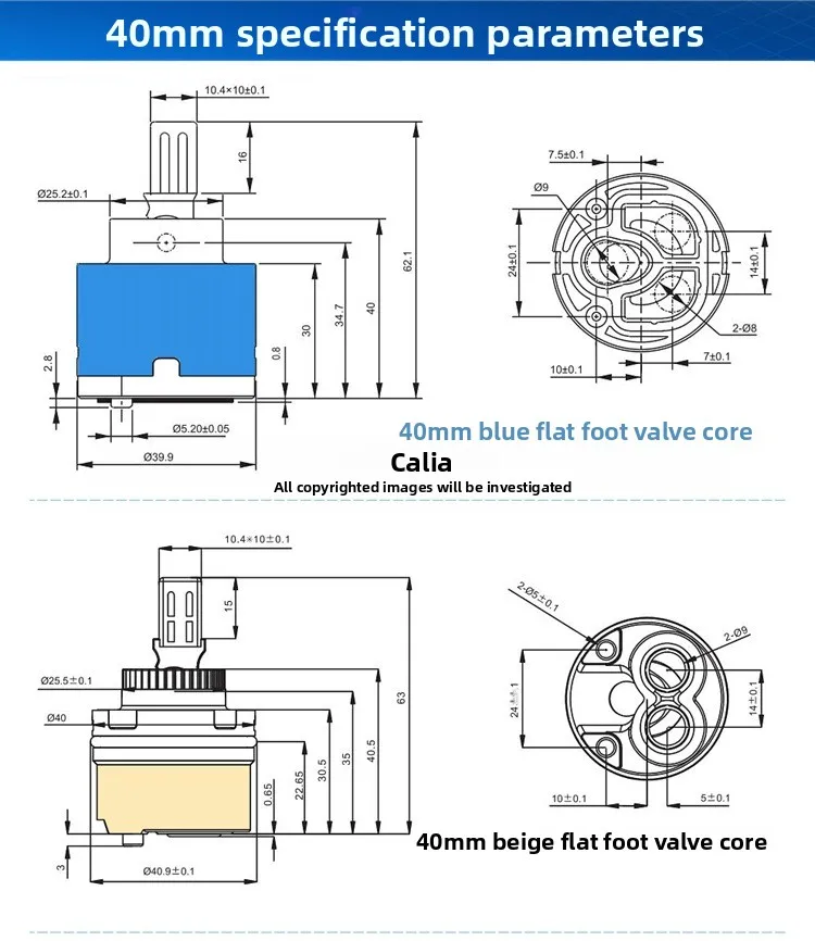 ตลับก๊อกน้ำเซรามิกสากล 35/40 มม. แกนวาล์วผสมร้อนเย็น – แบน/เท้าสูง