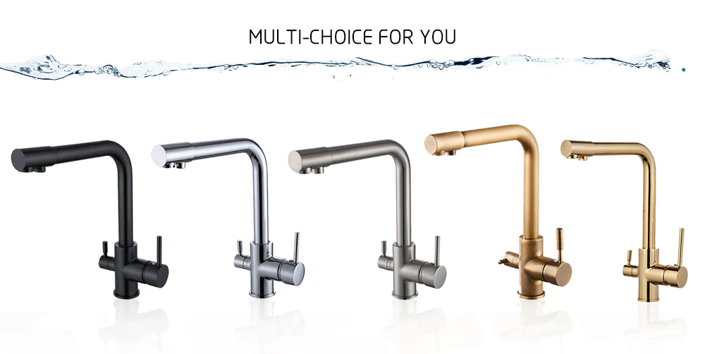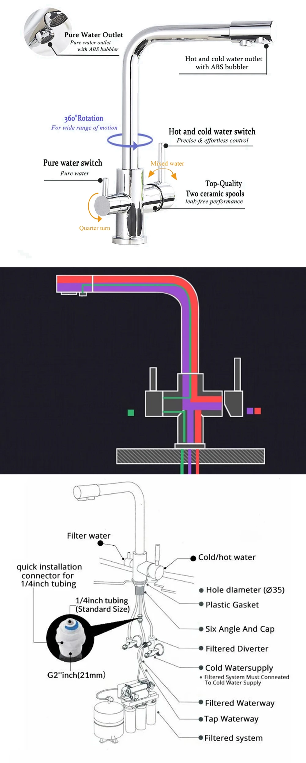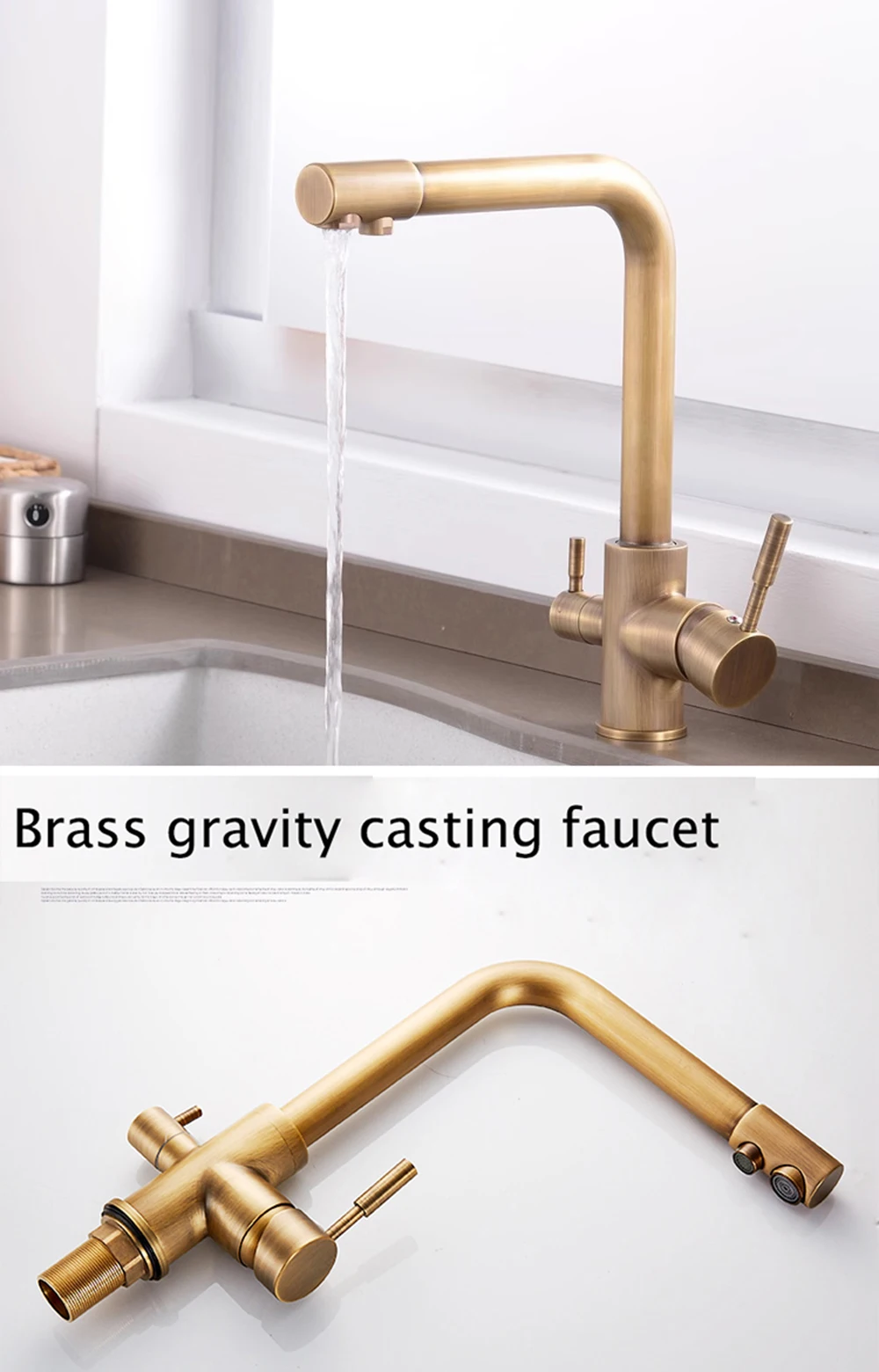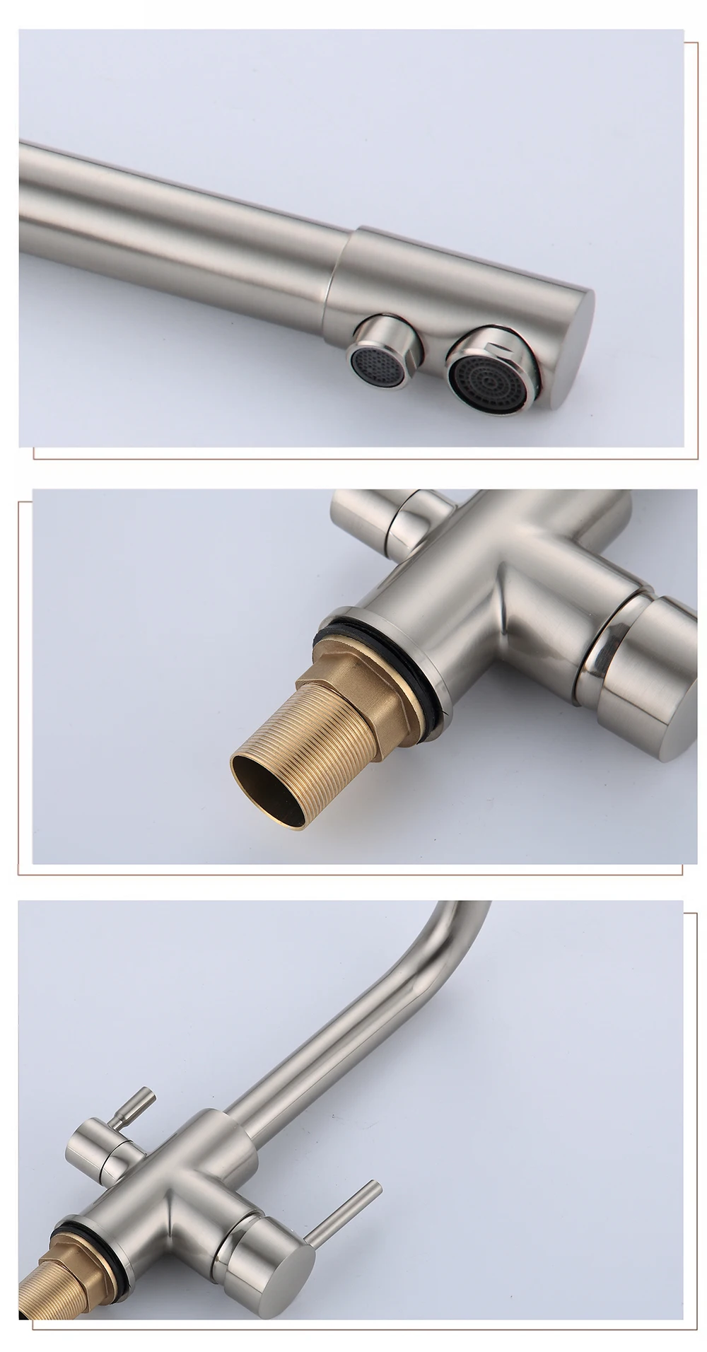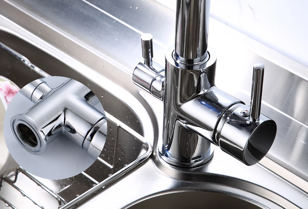 BAKALAกรองก๊อกน้ําห้องครัวน้ําดื่มKitchen Tap Deckติดตั้งDual Handles 3-Wayร้อนเย็นน้ําผสม