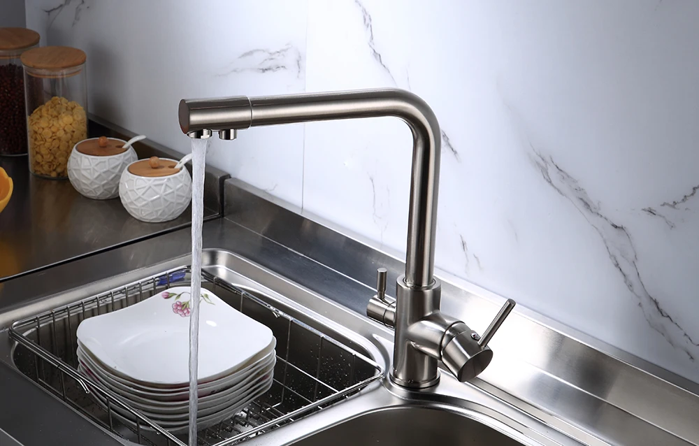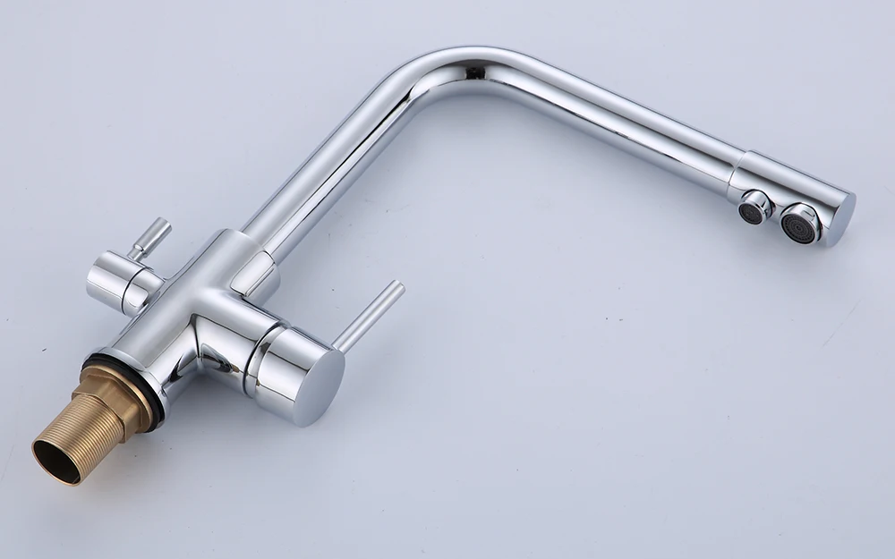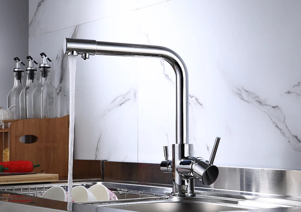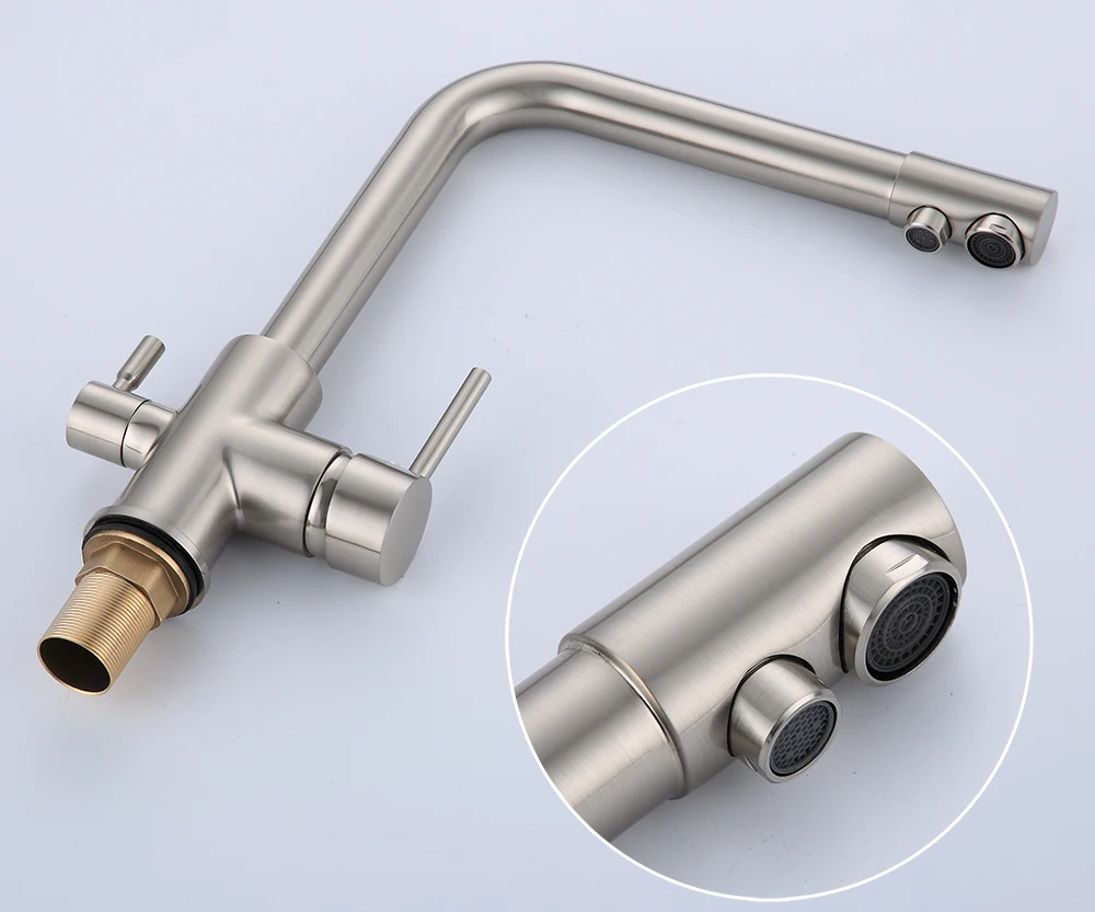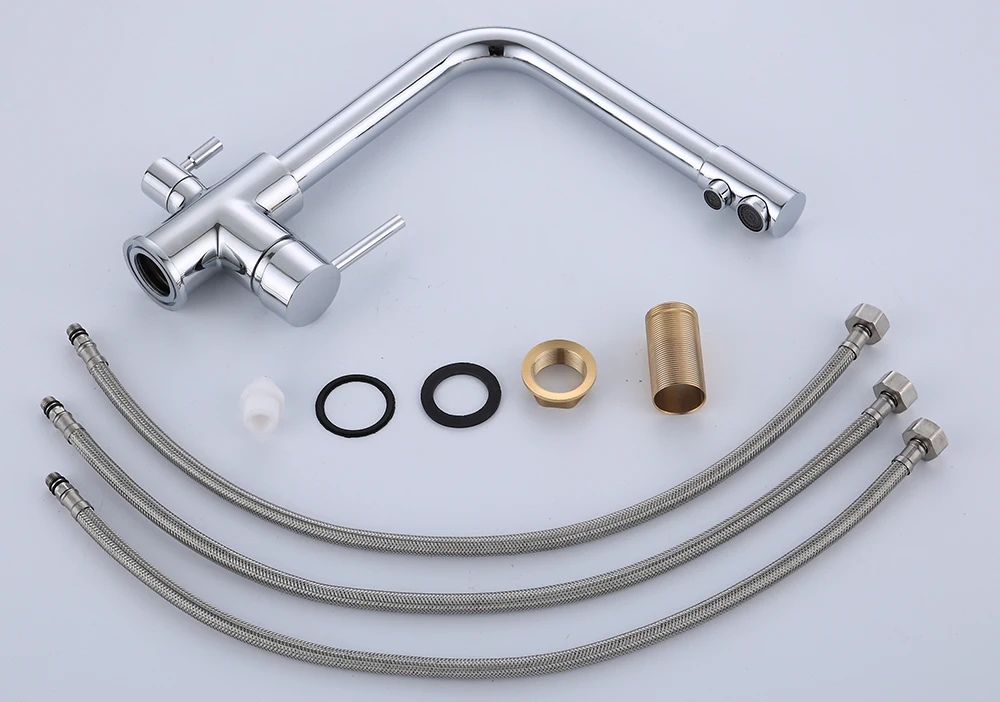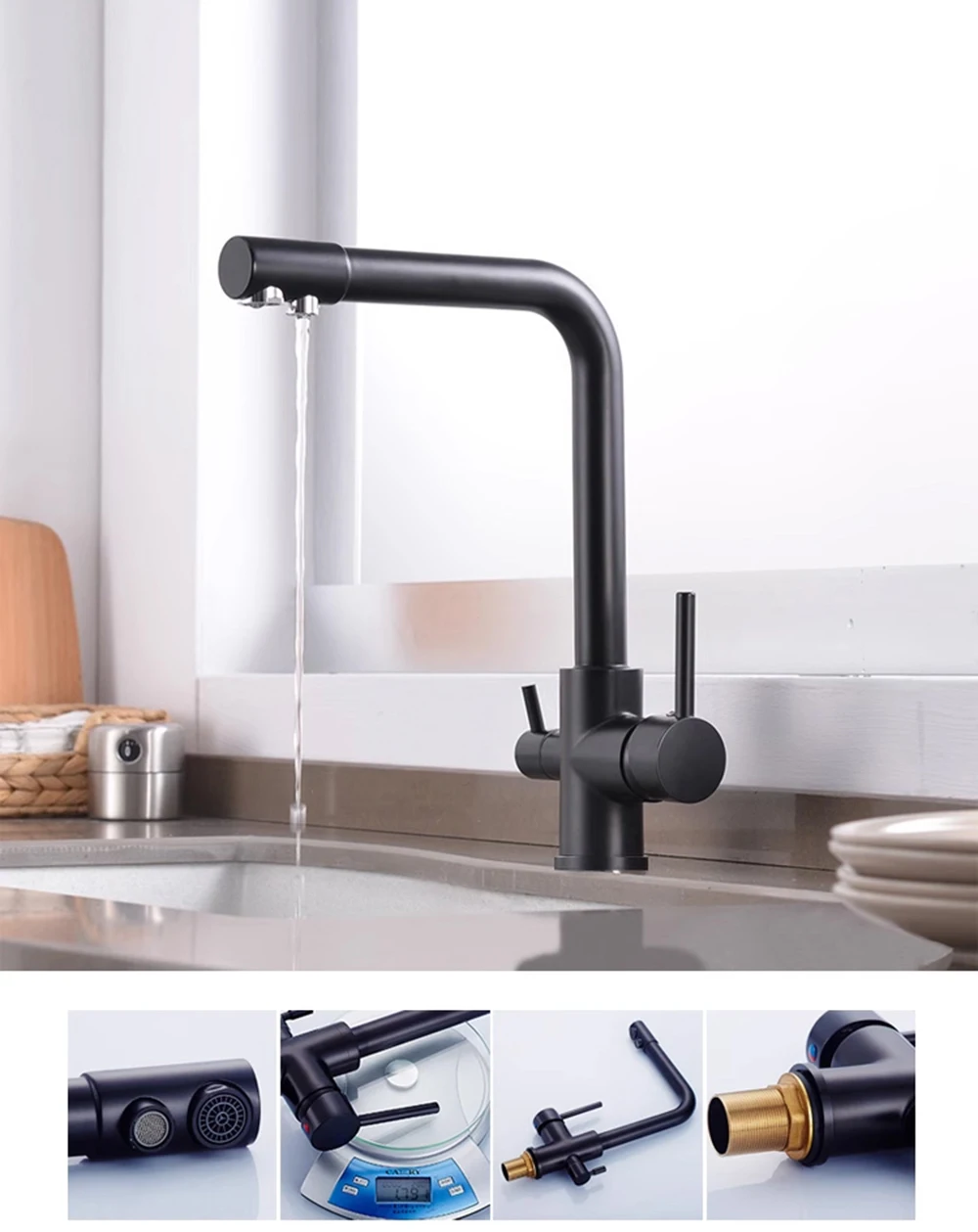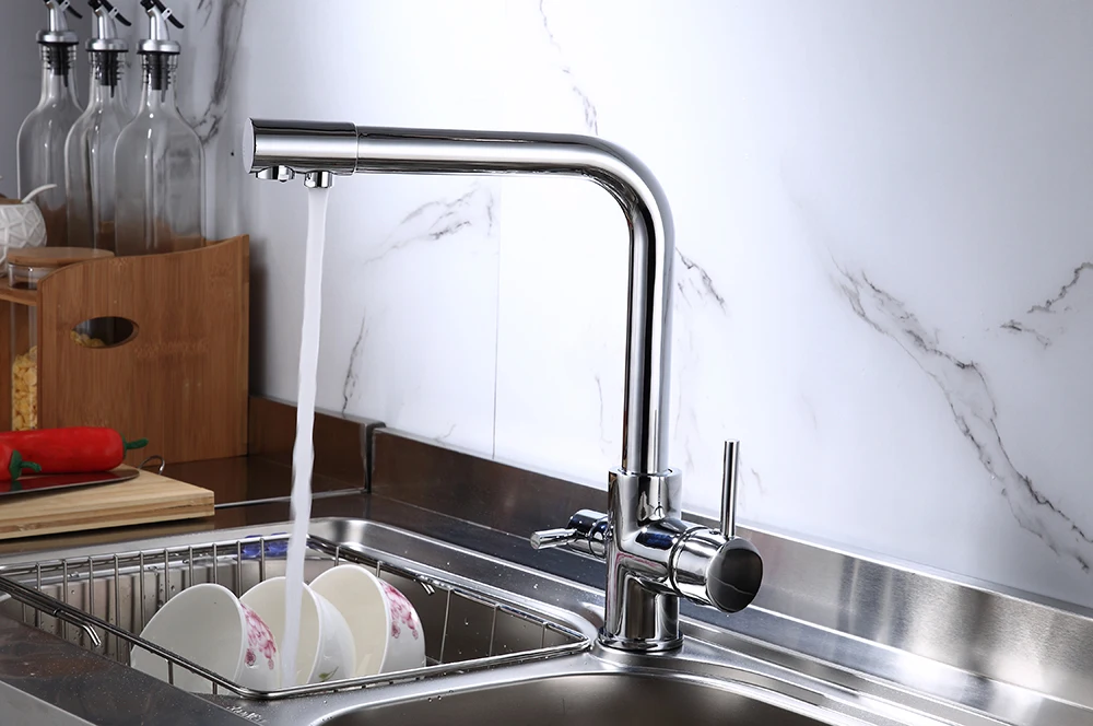 BAKALAกรองก๊อกน้ําห้องครัวน้ําดื่มKitchen Tap Deckติดตั้งDual Handles 3-Wayร้อนเย็นน้ําผสม
