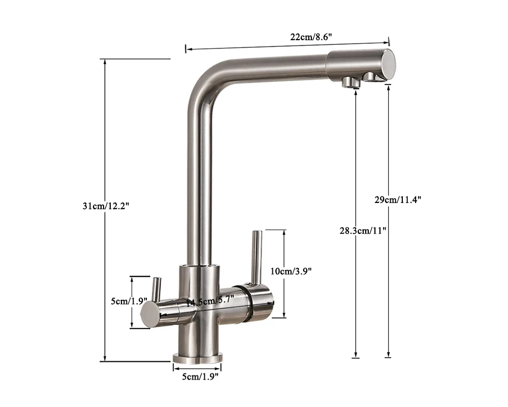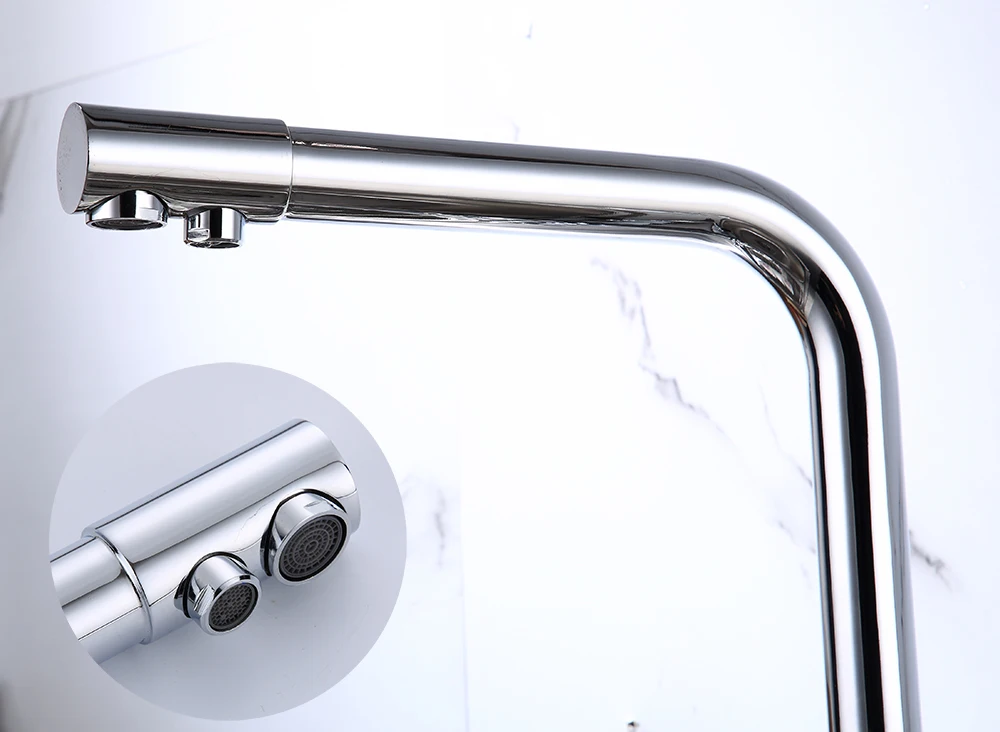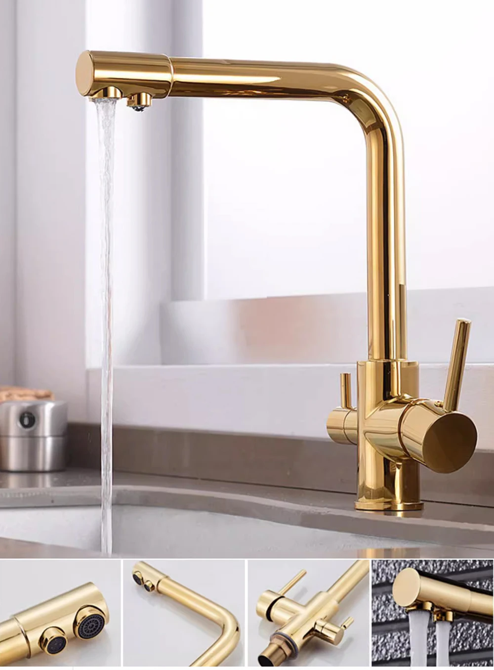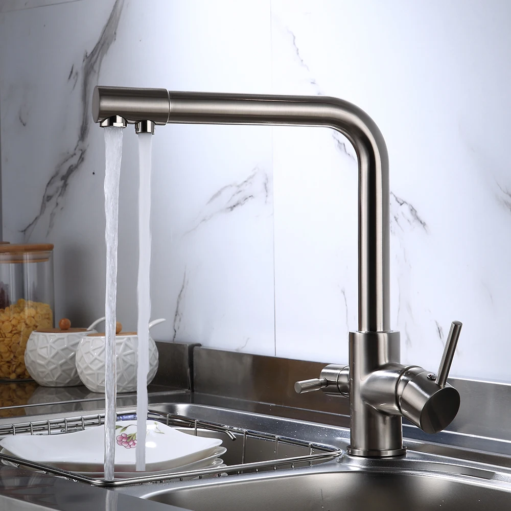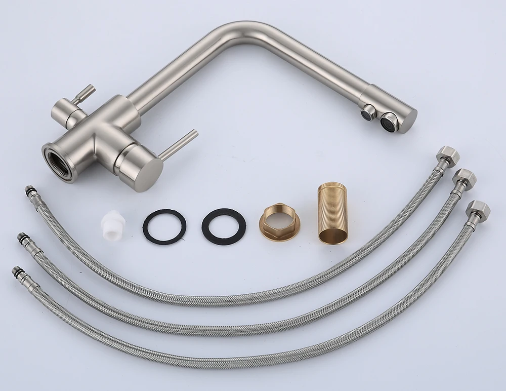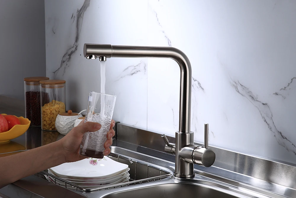 BAKALAกรองก๊อกน้ําห้องครัวน้ําดื่มKitchen Tap Deckติดตั้งDual Handles 3-Wayร้อนเย็นน้ําผสม