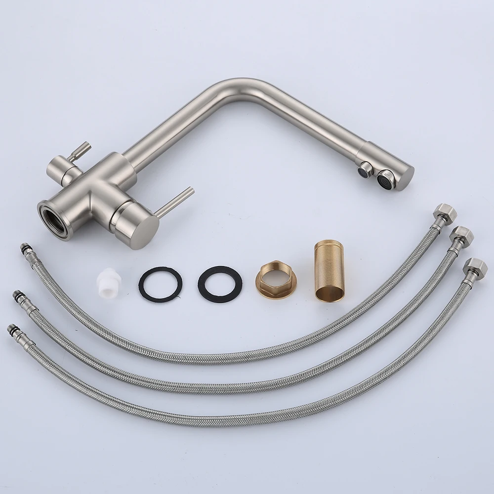 BAKALAกรองก๊อกน้ําห้องครัวน้ําดื่มKitchen Tap Deckติดตั้งDual Handles 3-Wayร้อนเย็นน้ําผสม