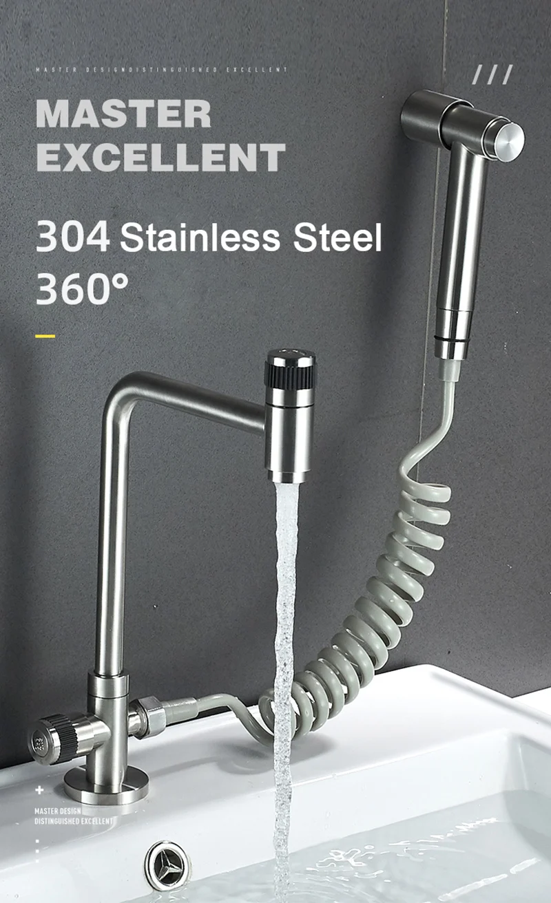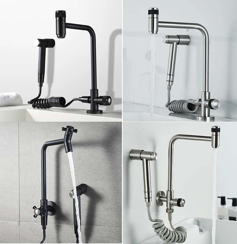 บากาลาก๊อกน้ำสำหรับห้องน้ำแบบหมุนก๊อกน้ำสำหรับห้องครัวผนังหรือบนดาดฟ้าก๊อกน้ำสำหรับห้องน้ำก๊อกน้ำออกประตูทำจากสแตนเลส304