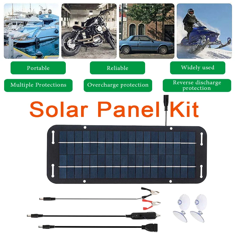 【การใช้งานที่หลากหลาย】เครื่องชาร์จพลังงานแสงอาทิตย์แบบหยดนี้เหมาะสำหรับยานพาหนะหลากหลายประเภท เช่น รถบ้าน (RV), รถแคมป์, รถแทรกเตอร์, รถจักรยานยนต์, รถสโนว์โมบิล และเรือ