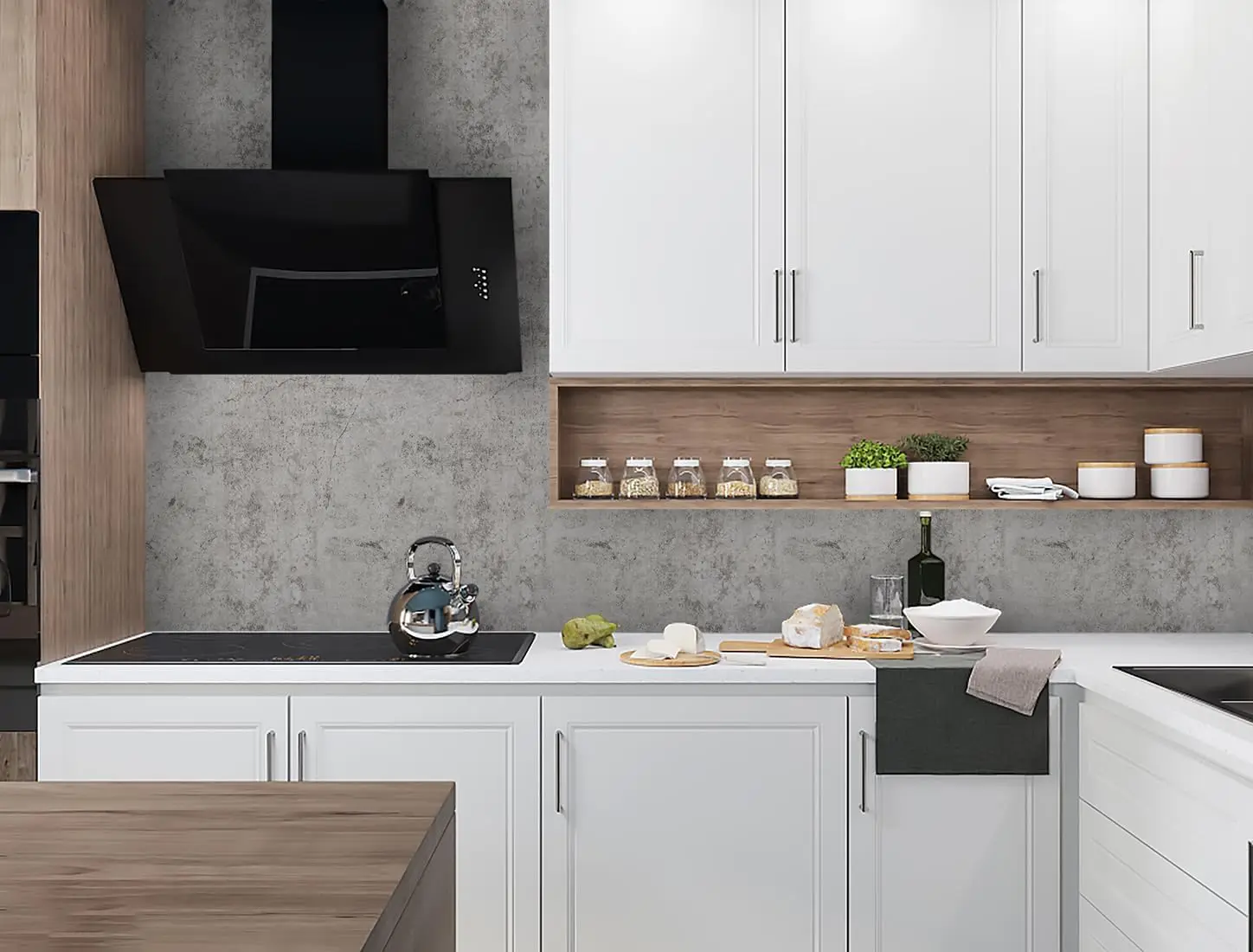 วอลเปเปอร์ติดผนังคอนกรีตสีเทา – ฟิล์มกาวในตัวกันน้ำสำหรับตู้ เคาน์เตอร์ ผนัง – คอนต้าแบบถอดได้แบบมีพื้นผิว