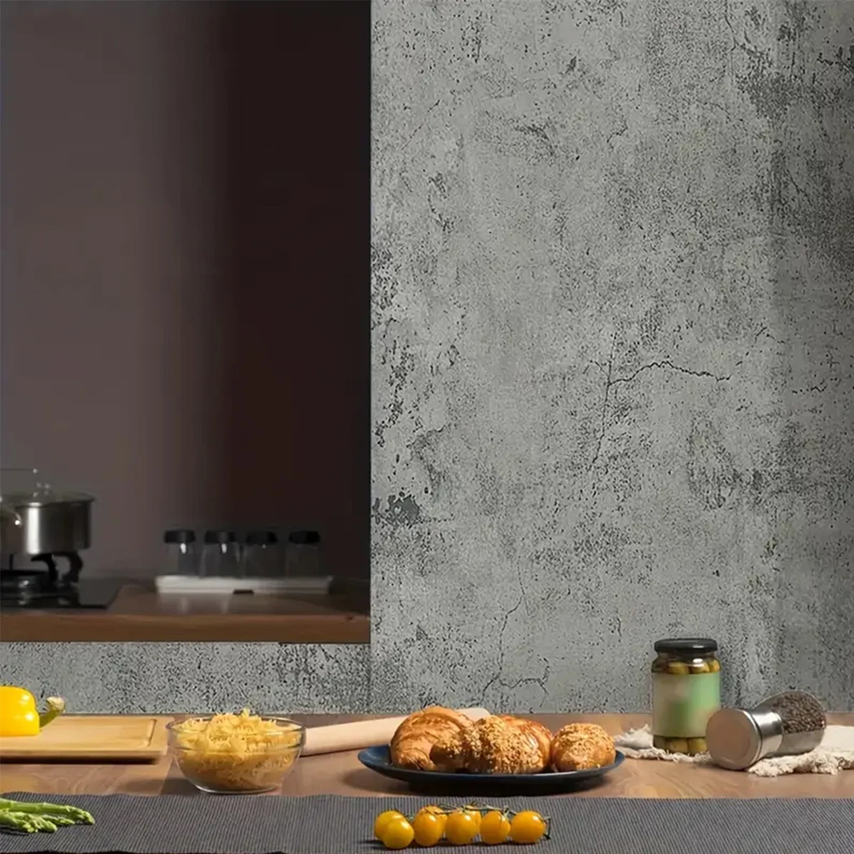 วอลเปเปอร์ติดผนังคอนกรีตสีเทา – ฟิล์มกาวในตัวกันน้ำสำหรับตู้ เคาน์เตอร์ ผนัง – คอนต้าแบบถอดได้แบบมีพื้นผิว