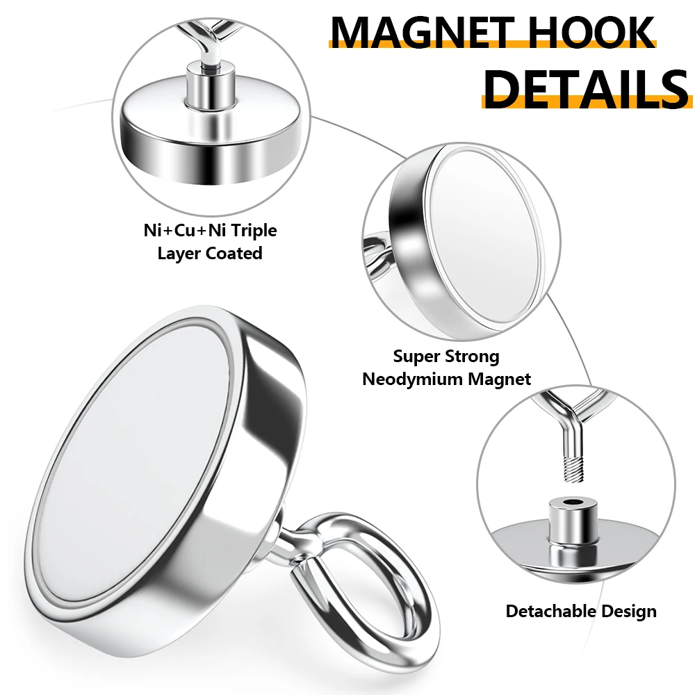 N52 Super Strong Neodymium Salvage แม่เหล็กตะขอตกปลาแม่เหล็ก Neodymium แม่เหล็ก Searcher แม่เหล็ก Neodymium ที่มีประสิทธิภาพสําหรับตกปลา