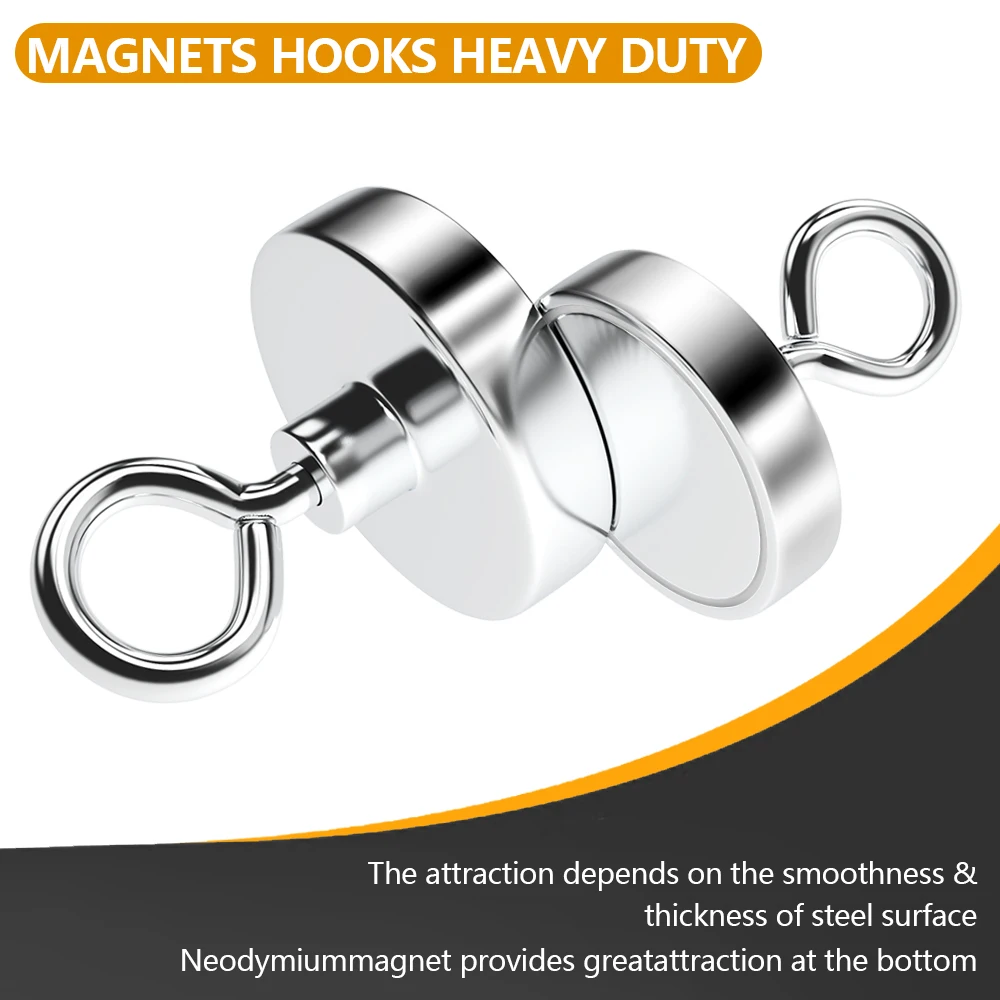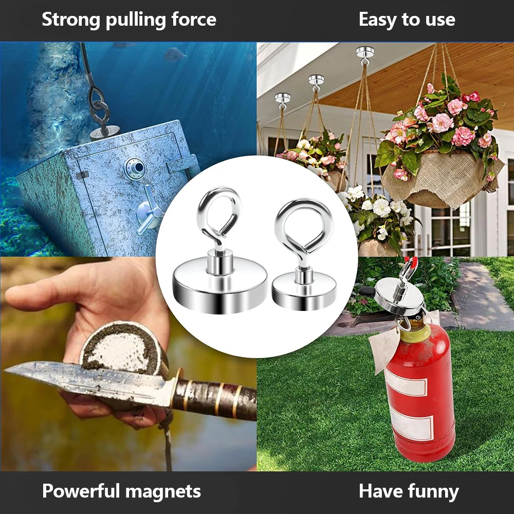▲Multi-purpose-unique design with countersunk holes and eye bolts is very suitable for fishing all kinds of iron-nickel materials underwater. It is a good idea for magnet fishing, lifting, hanging, and recycling applications. Search for eye bolts, screws, hooks, fasteners and other items in your warehouse garage or yard and have fun.