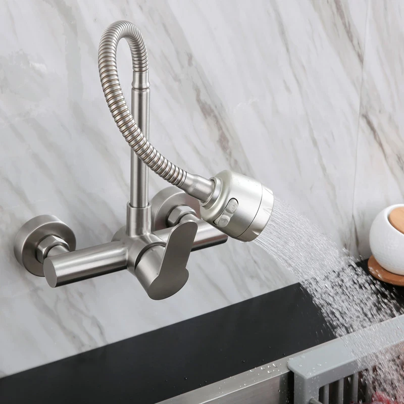 สีดํา/แปรงก๊อกน้ําห้องครัว Wall Mount 2 ฟังก์ชั่นร้อนและเย็นก๊อกน้ําอ่างล้างจาน 360 องศาหมุน Sprayer ก๊อกน้ํา จาก 1 รีวิว