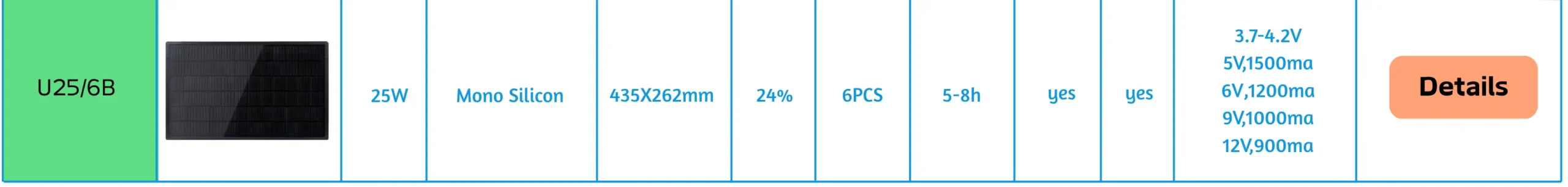 แผงโซลาร์เซลล์สร้างพลังงาน 25W โดยมีแรงดันเอาต์พุต 15-18V และกระแส 1.5A ทำให้มั่นใจได้ว่าพลังงานที่ผลิตได้ต่อวันเพียงพอสำหรับการใช้พลังงานของเราเตอร์