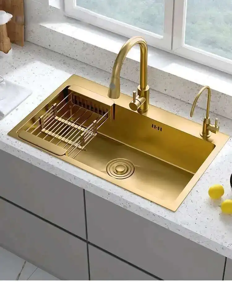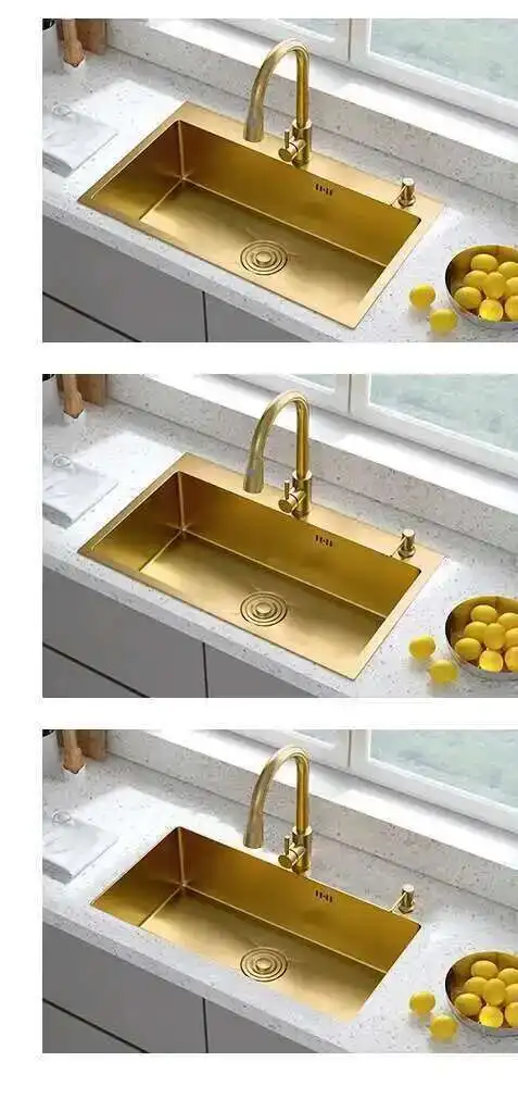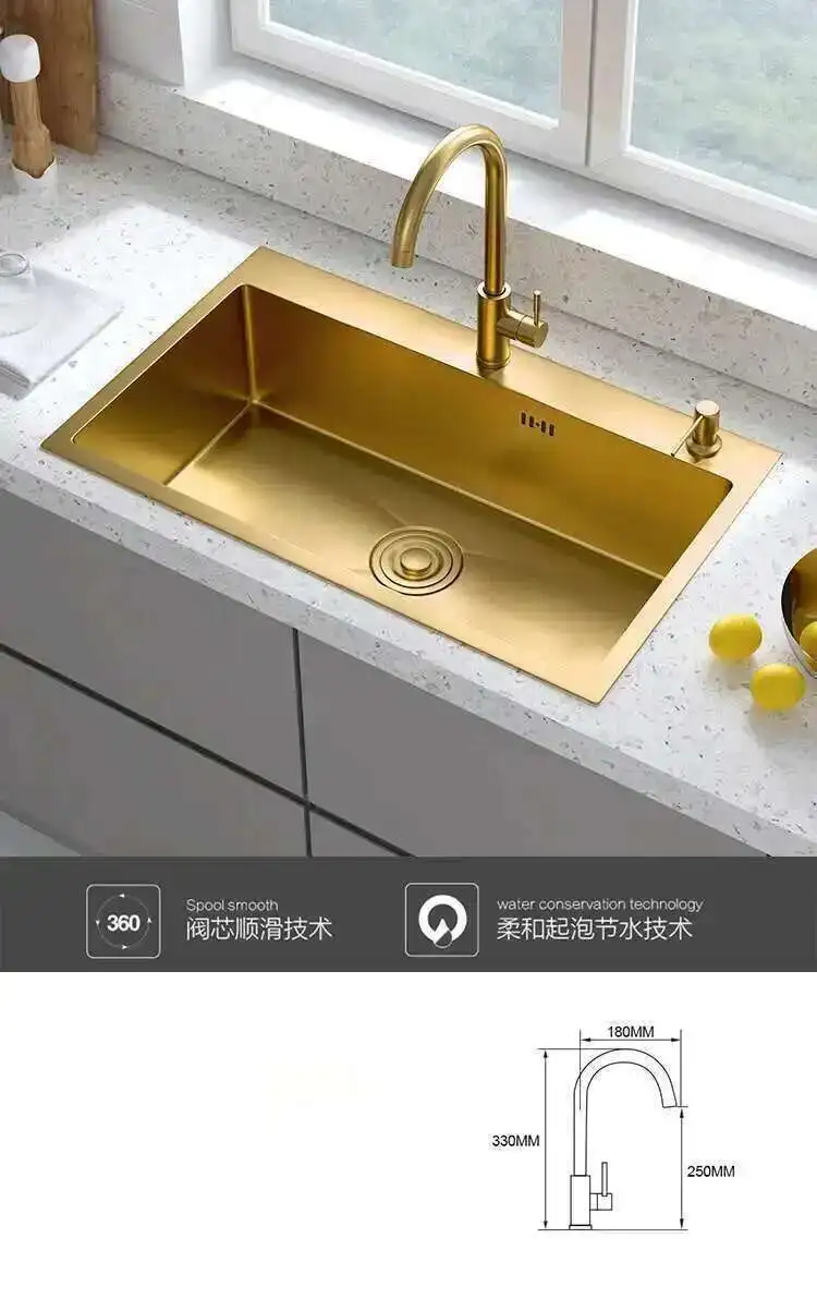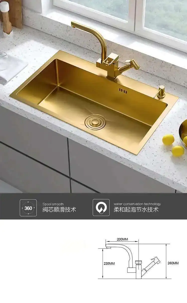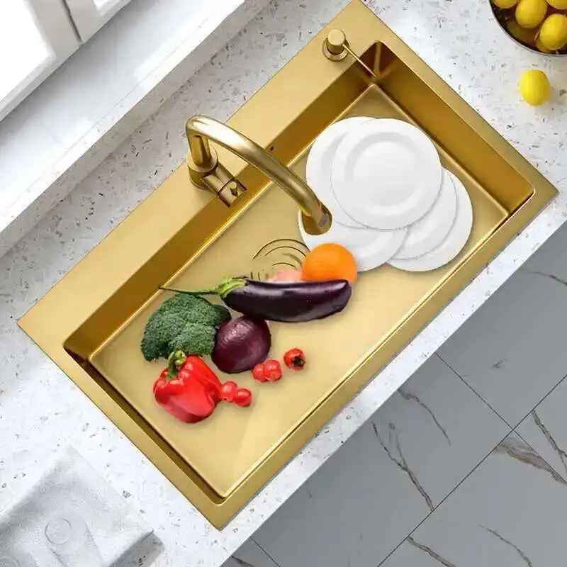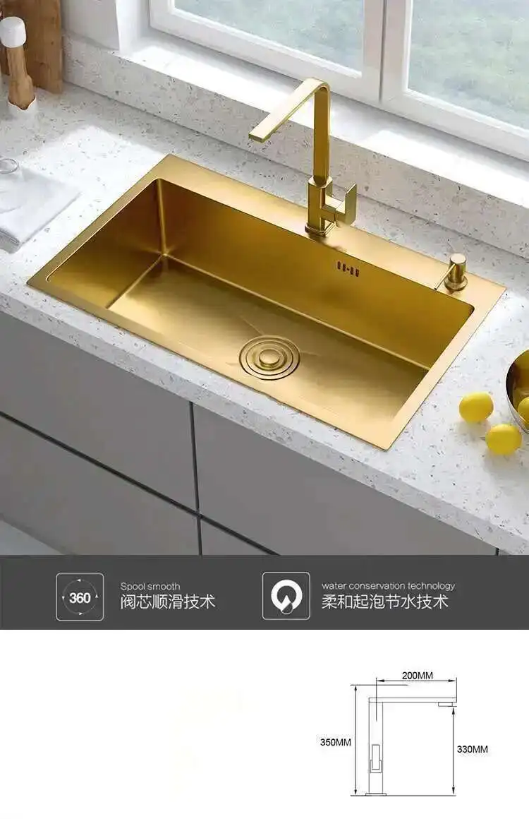 ทองสแตนเลสสตีลห้องครัว Modern Home KITCHEN อุปกรณ์เสริมหรูหรา Handmade Single-Slot KITCHEN Under-Counter อ่างล้างหน้า
