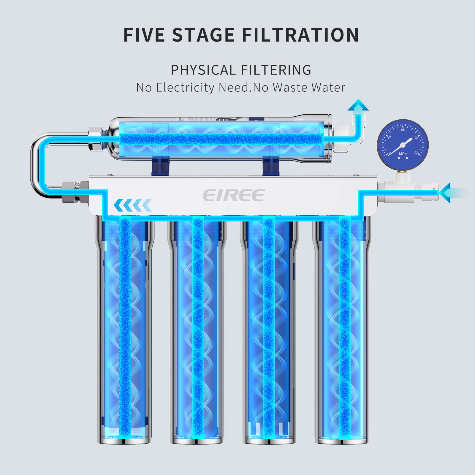 เครื่องกรองน้ำดื่ม 5 ขั้นตอน EIREE อัพเกรด วัสดุสแตนเลส ระบบกรองอัลตร้าฟิลเตรชั่น พร้อมไฟ LED กรองน้ำก๊อกดื่มได้โดยตรง