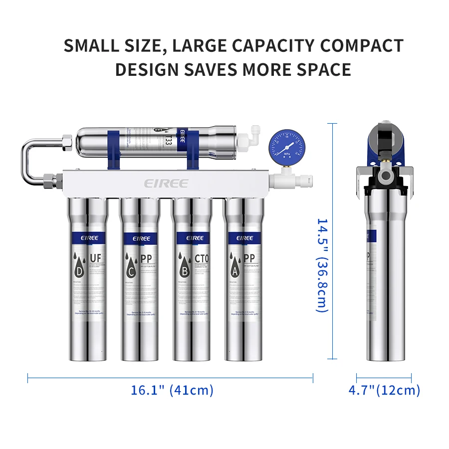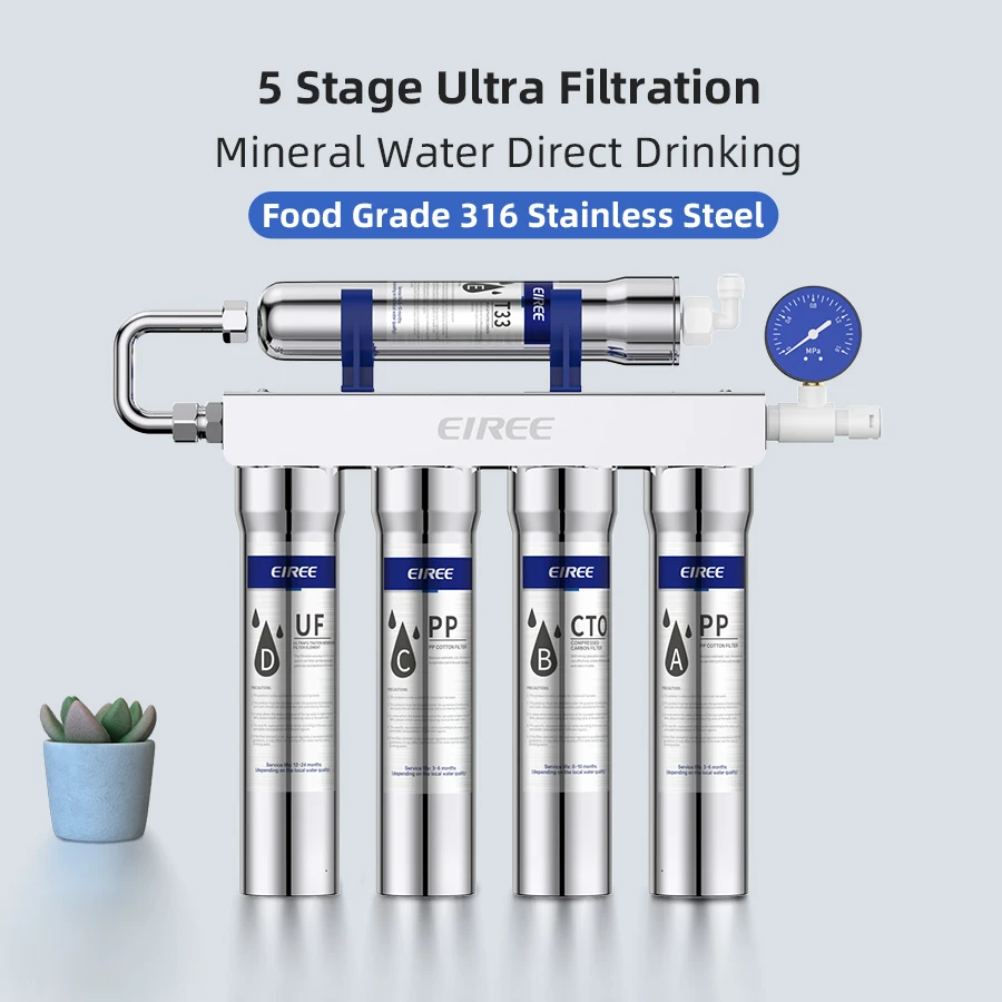เครื่องกรองน้ำดื่ม 5 ขั้นตอน EIREE อัพเกรด วัสดุสแตนเลส ระบบกรองอัลตร้าฟิลเตรชั่น พร้อมไฟ LED กรองน้ำก๊อกดื่มได้โดยตรง