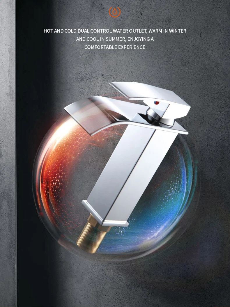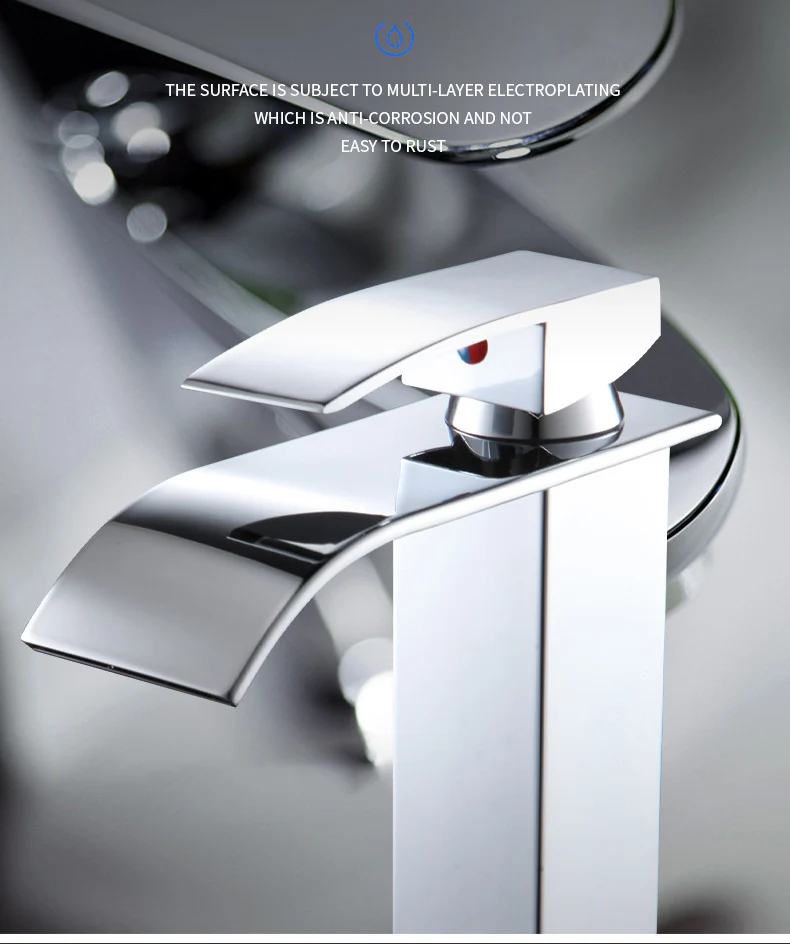 อ่างล้างหน้าแบบน้ำตก สแตนเลส พร้อมก๊อกน้ำสูง-ต่ำ สีดำ น้ำร้อน-น้ำเย็น สำหรับห้องน้ำในบ้าน