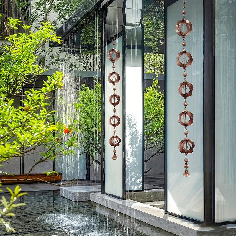 5.[ฟังก์ชันตกแต่ง] โซ่รางน้ำฝนนี้สามารถใช้เป็นทางเลือกแทนรางน้ำแบบดั้งเดิม หรือสามารถใช้เป็นของตกแต่งสวนแบบแขวนเพื่อสร้างความสวยงามในรูปแบบน้ำแนวตั้งได้อย่างง่ายดาย เมื่อฝนตก น้ำฝนจะสะสมตัวตามโซ่และค่อยๆ ไหลลงมาด้านล่าง สร้างความงดงามให้กับสวนของคุณในรูปแบบน้ำตกแนวตั้ง