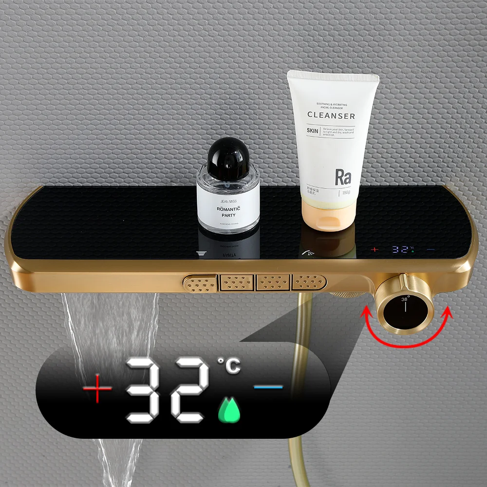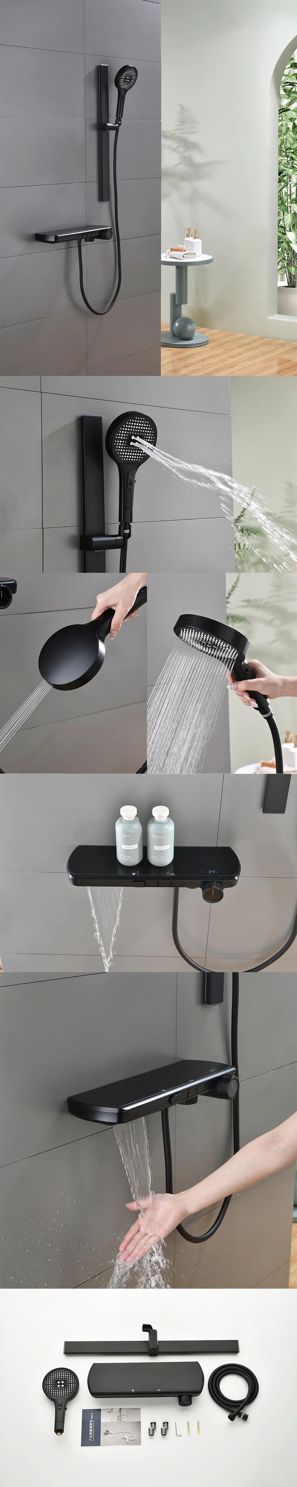 ชุดก๊อกน้ำอัจฉริยะระบบดิจิตอลระดับไฮเอนด์สำหรับห้องน้ำ พร้อมระบบฝักบัวแบบแยกส่วนสำหรับอ่างอาบน้ำ ฝักบัวแบบเรนชาวเวอร์ และก๊อกน้ำแบบวอเตอร์ฟอล