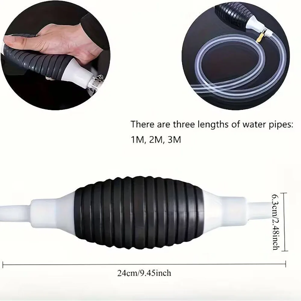 เครื่องดูดของเหลวอเนกประสงค์: ปั๊มกาลักน้ำมีท่อ PVC ใสแบบยืดหยุ่นและทนทาน หนาและยาว (สามารถแบ่งออกเป็น 2 ส่วนได้) ซึ่งทนทานต่อน้ำมัน อุณหภูมิสูง และการกัดกร่อน ทำให้ปั๊มนี้ถ่ายเทของเหลวได้รวดเร็วยิ่งขึ้น