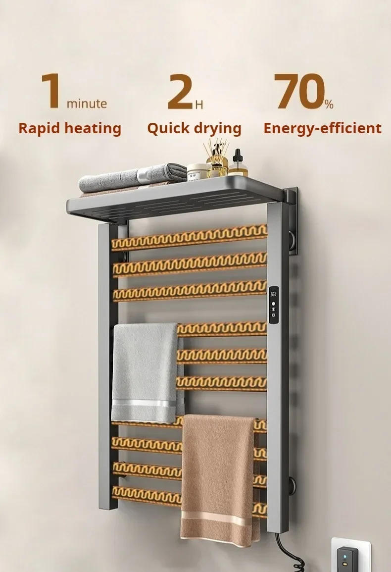 ราวแขวนผ้าอลูมิเนียมอัลลอยด์ ราวแขวนผ้าไฟฟ้าอัจฉริยะ พับได้ ปรับอุณหภูมิได้ ชั้นวางของ อุปกรณ์ห้องน้ำ