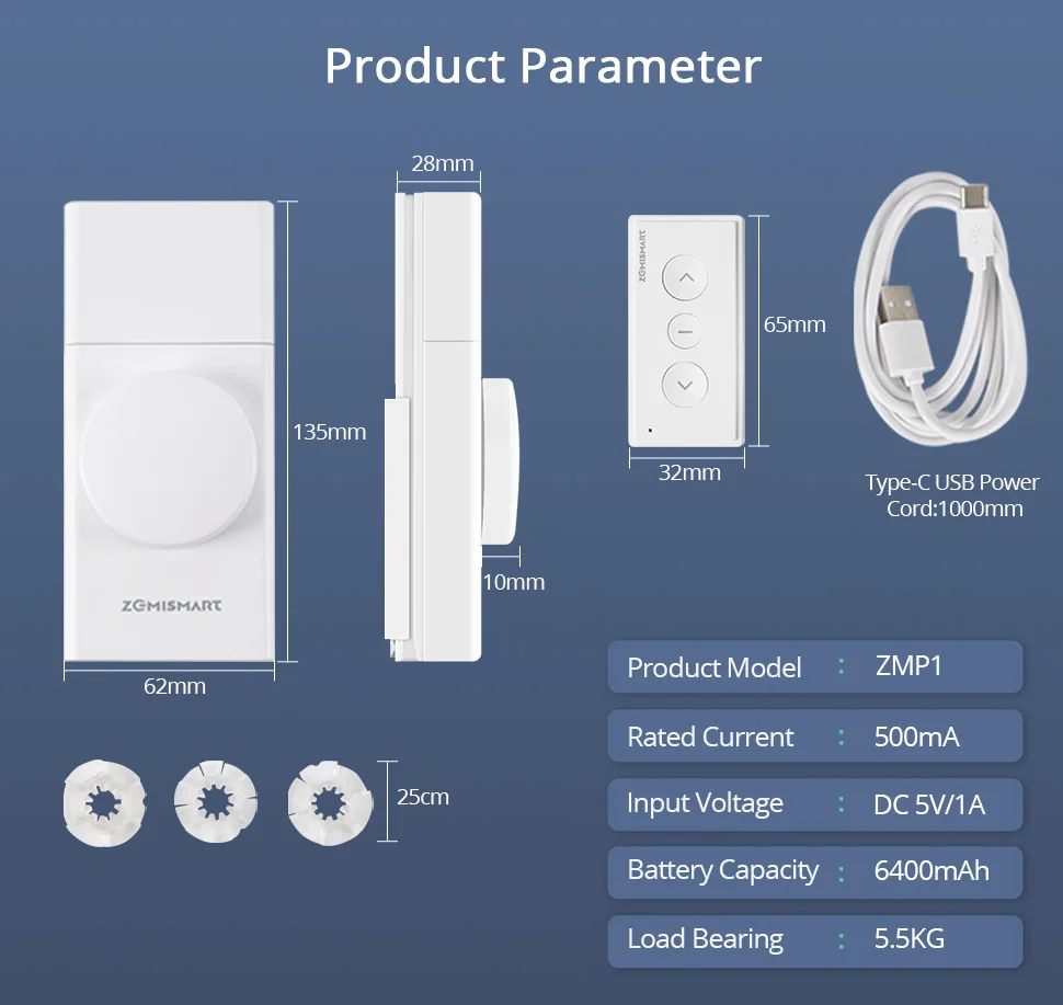Zemismart Zigbee ชุดควบคุมม่านม้วนอัจฉริยะ ปุ่มควบคุม ปรับความเร็วได้ ใช้พลังงานจากแบตเตอรี่ ทำงานร่วมกับแอป Tuya Alexa Google Home