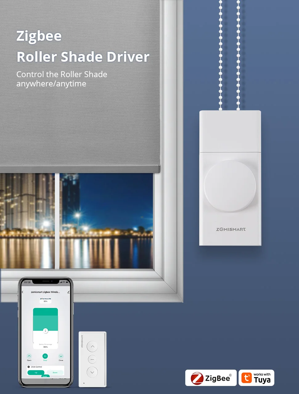 Zemismart Zigbee สมาร์ท Roller Shade ไดร์เวอร์ปุ่มควบคุมปรับความเร็วแบตเตอรี่ขับเคลื่อนทำงานร่วมกับ Tuya App Alexa Google Home