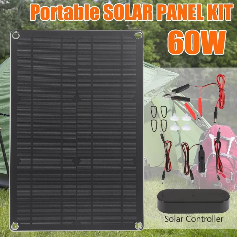 แผงพลังงานแสงอาทิตย์ 60W USB + DC เอาต์พุต Monocrystalline Solar Cell พร้อมชุดควบคุม PWM กลางแจ้ง Power Charger สําหรับโทรศัพท์ Camping RV รถ