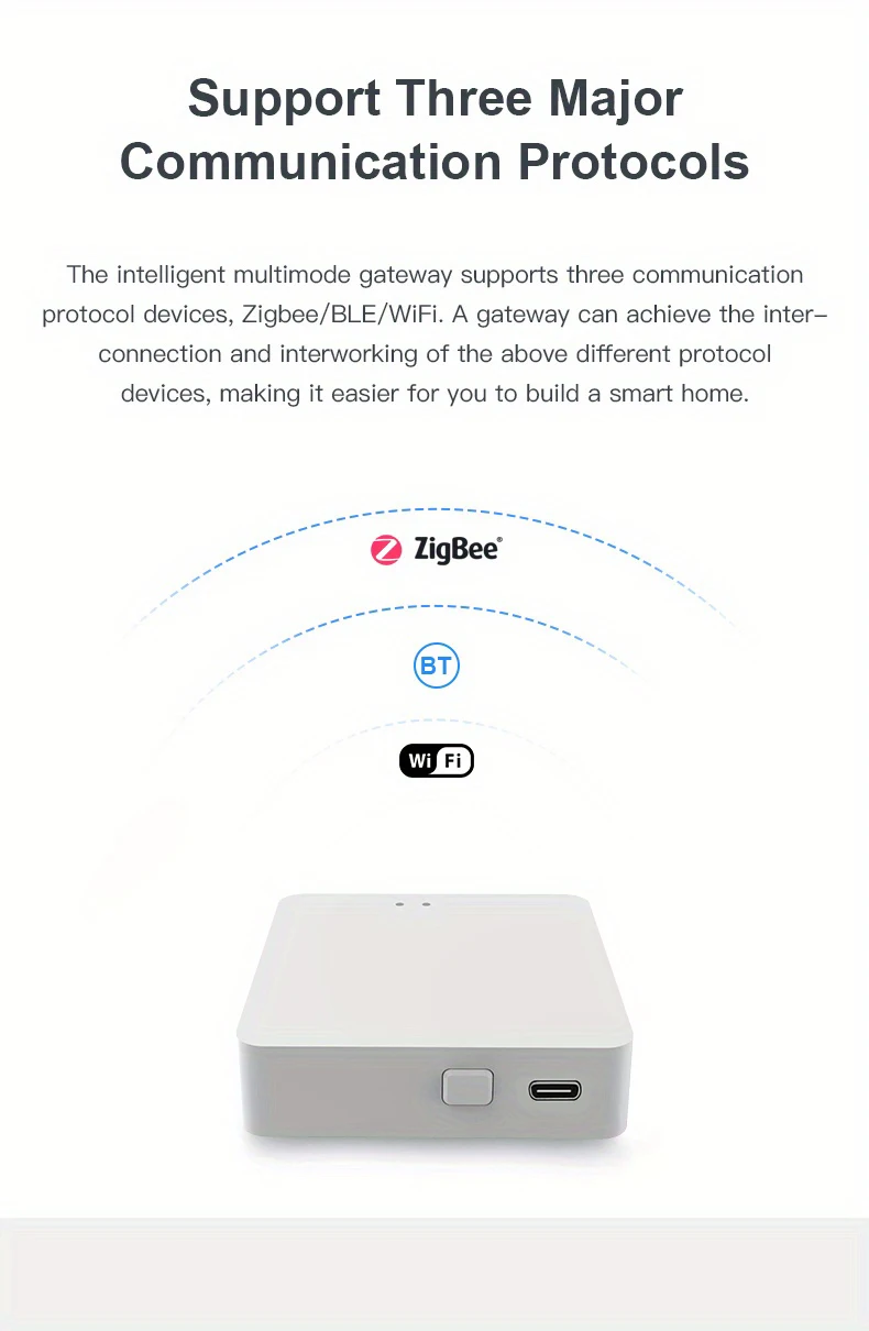ฟังก์ชั่นของไวไฟโปรโตคอลที่รองรับโดยเกตเวย์มัลติโหมดคือการแปลงข้อมูลของ ZigBee และบลูทูธให้เป็นข้อมูลของ WIFI เกตเวย์สื่อสารกับเราเตอร์ผ่าน WiFi หลังจากแปลงข้อมูลของอุปกรณ์ซิกผึ้งและบลูทูธและอัปโหลดข้อมูลไปยังคลาวด์เพื่อเชื่อมโยงกับแอป