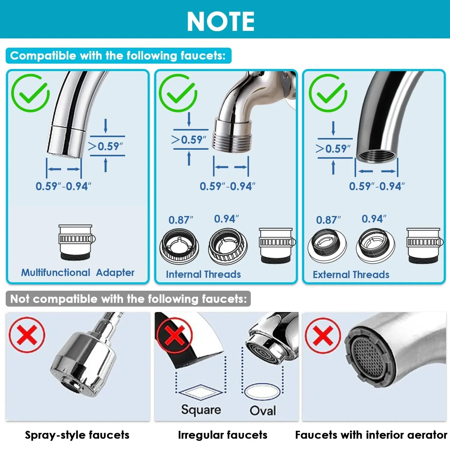 นอกจากนี้ในประเทศนี้ยังมีการใช้สารป้องกันการปล่อยกลิ่นเหม็นด้วยวิดีโอและคำแนะนำของผลิตภัณฑ์คุณสามารถติดตั้งตัวกรองก๊อกน้ำได้อย่างง่ายดายภายในไม่กี่นาที แพคเกจมาพร้อมกับ5อะแดปเตอร์ (0.87 "และ0.94" เกลียวภายใน0.87 "และ0.94" และอะแดปเตอร์มัลติฟังก์ชั่น) ซึ่งเหมาะกับก๊อกน้ำมาตรฐานส่วนใหญ่ ภาพ5th รายละเอียดความเข้ากันได้ของตัวกรองก๊อกน้ำอ่างล้างจานนี้ โปรดอ่านรูปภาพอย่างละเอียดก่อนซื้อเพื่อให้แน่ใจว่าผลิตภัณฑ์นี้เหมาะกับก๊อกน้ำของคุณ