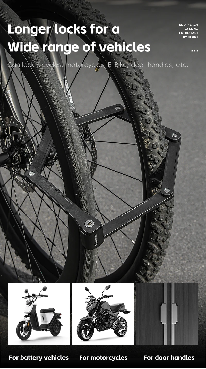 WEST BIKING Portable Bicycle Folding Lock ได้รับการออกแบบมาเพื่อให้พกพาสะดวก ทำให้เหมาะสำหรับนักปั่นจักรยานที่ต้องเดินทาง