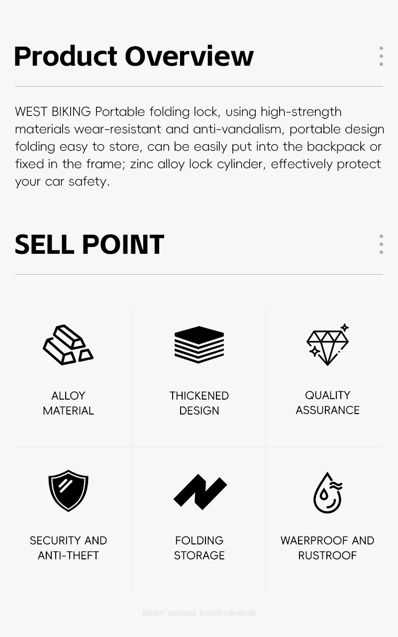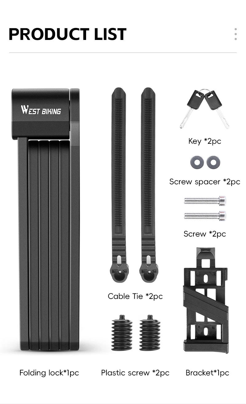 กุญแจล็อคจักรยานพับได้แบบพกพา WEST BIKING ป้องกันการโจรกรรม สำหรับจักรยาน มอเตอร์ไซค์ สกู๊ตเตอร์ จักรยานเสือภูเขา อุปกรณ์เสริมสำหรับจักรยาน จาก 2 รีวิว