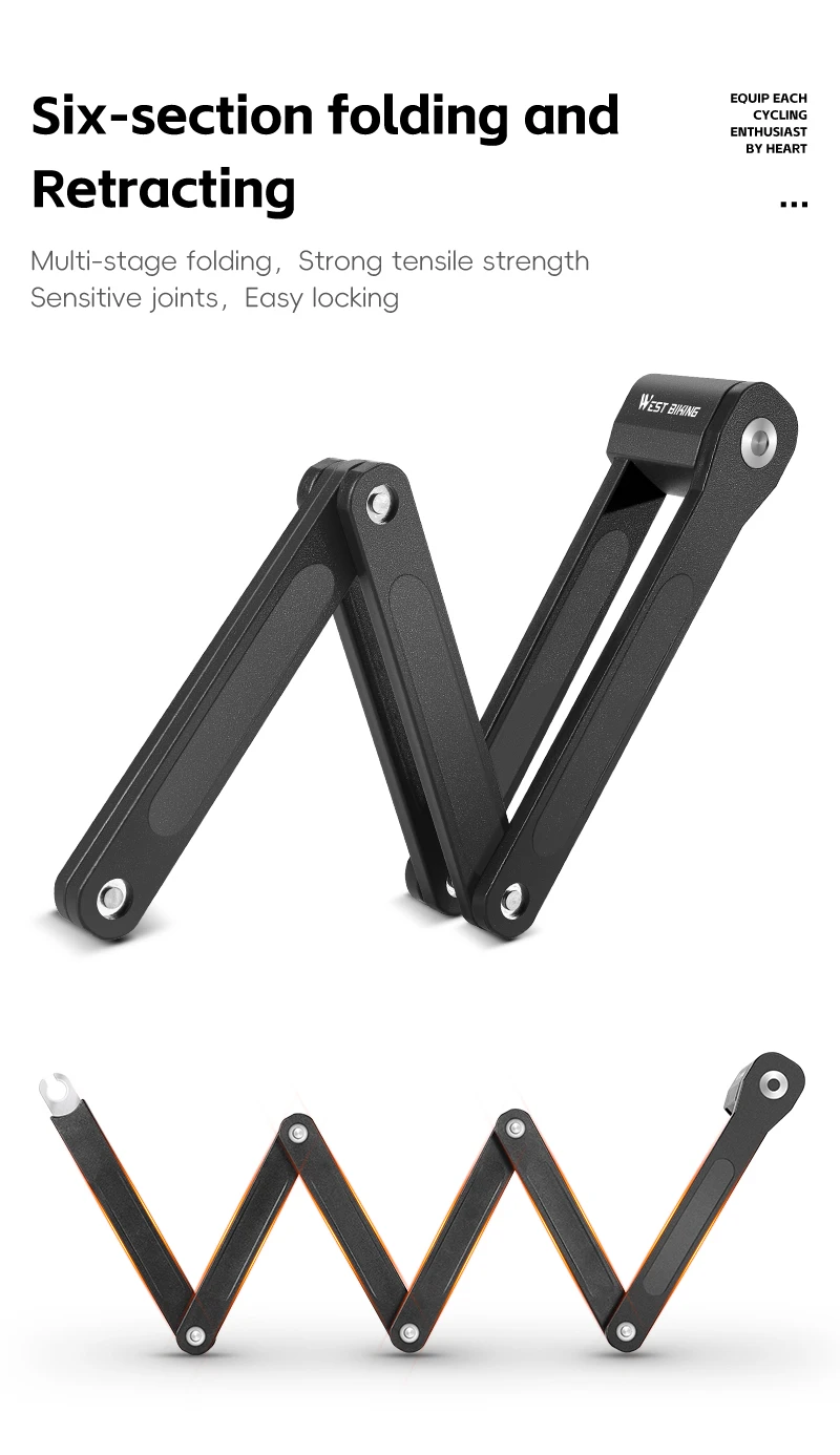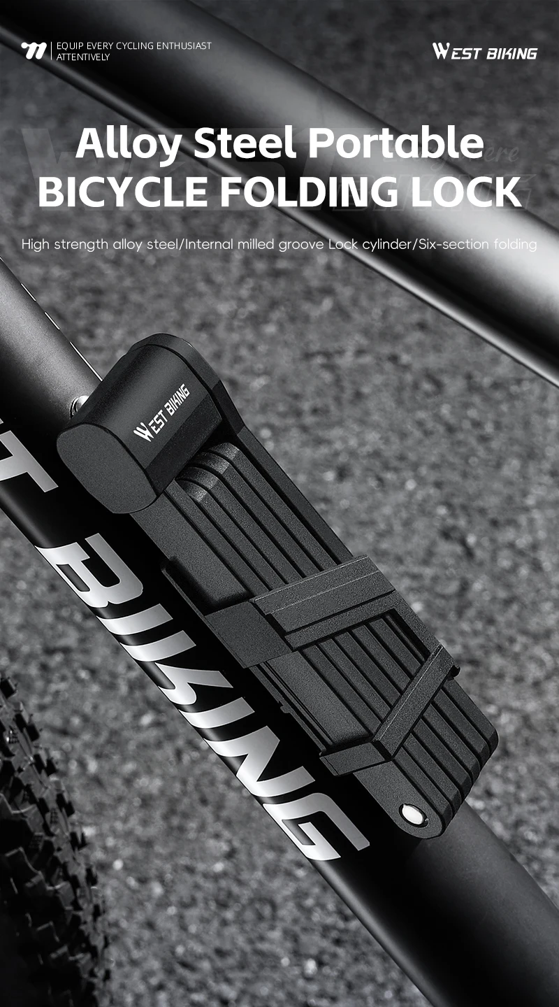 กุญแจล็อคจักรยานพับได้แบบพกพา WEST BIKING ป้องกันการโจรกรรม สำหรับจักรยาน มอเตอร์ไซค์ สกู๊ตเตอร์ จักรยานเสือภูเขา อุปกรณ์เสริมสำหรับจักรยาน