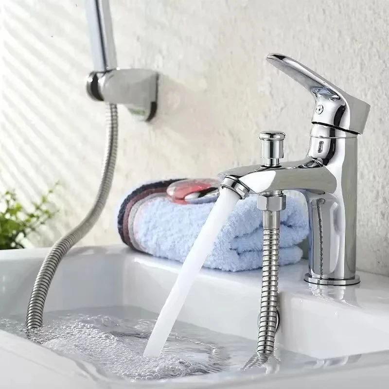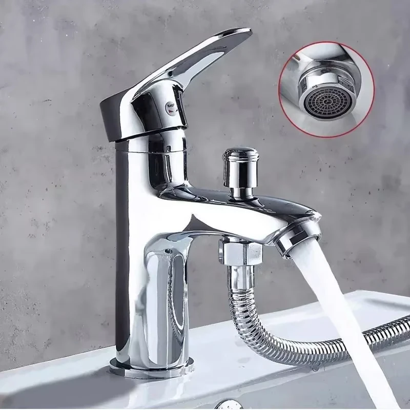 ก๊อกน้ำแบบรูเดียวสำหรับอ่างล้างหน้าในห้องน้ำแบบใช้ได้สองแบบ หัวฝักบัว และก๊อกน้ำผสมน้ำร้อนน้ำเย็นอเนกประสงค์
