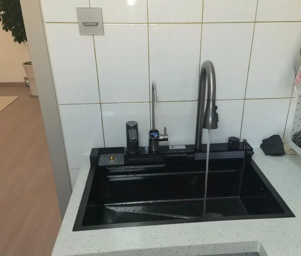 อ่างล้างจานสแตนเลสแบบน้ำตกพร้อมหน้าจอดิจิตอล อ่างล้างจานอเนกประสงค์ขนาดใหญ่แบบช่องเดียว มีหลายแบบให้เลือก จาก 2 รีวิว