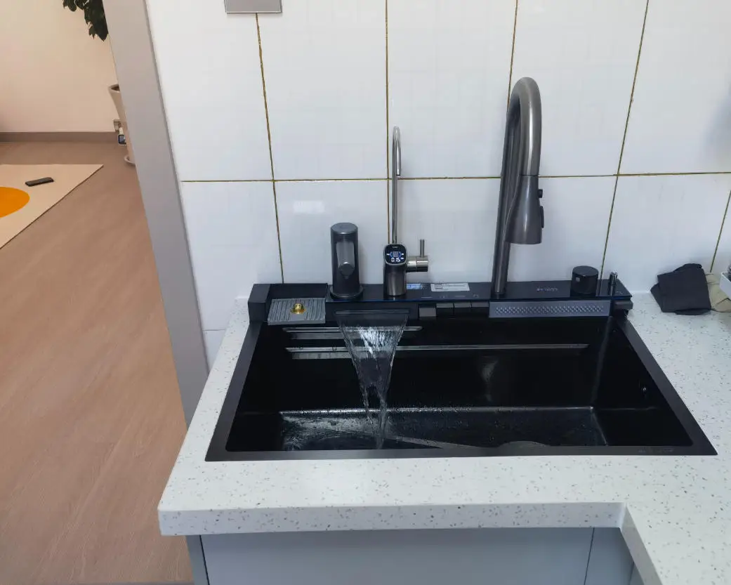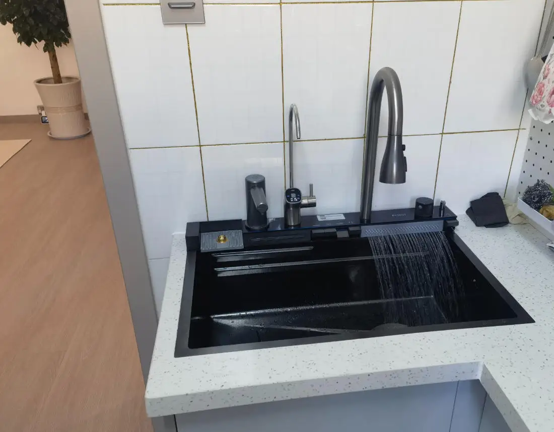 อ่างล้างจานสแตนเลสแบบน้ำตกพร้อมหน้าจอดิจิตอล อ่างล้างจานอเนกประสงค์ขนาดใหญ่แบบช่องเดียว มีหลายแบบให้เลือก