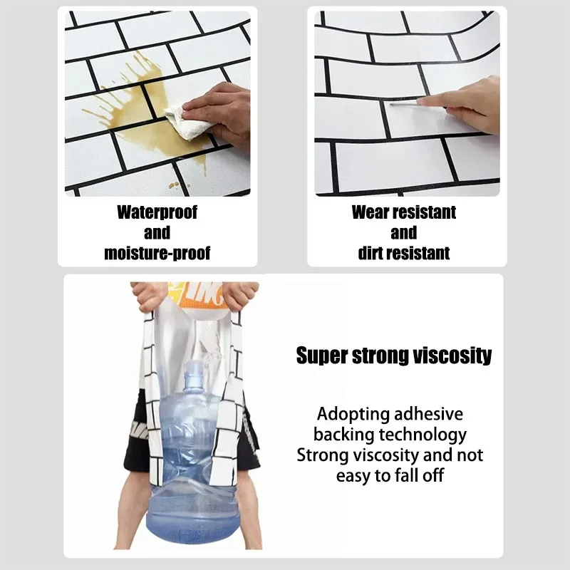 ตู้ครัววอลล์เปเปอร์สติ๊กเกอร์ติดผนังอิฐสีขาวกันน้ําและน้ํามัน 40 ซม.ทนต่ออุณหภูมิสูงกาวบ้าน