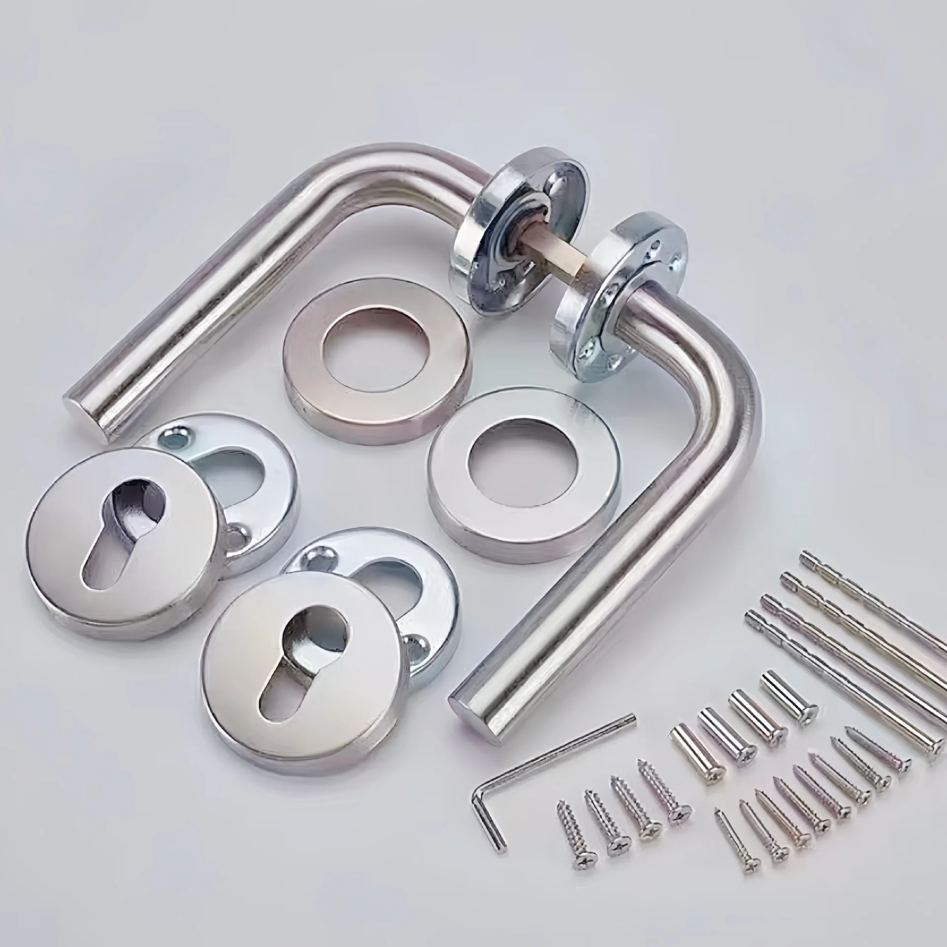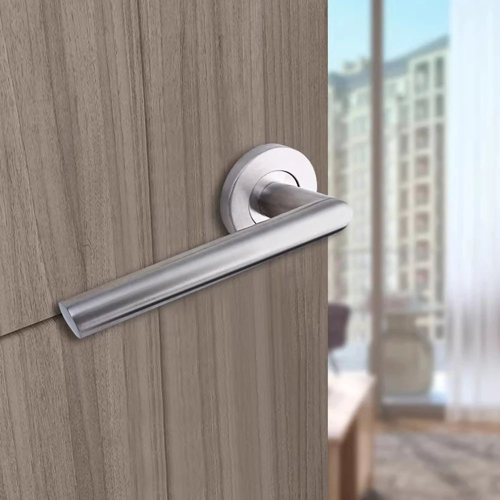 มือจับประตูเหล็กกล้าไร้สนิม 304 มาตรฐานยุโรป แบบท่อกลม มุมฉาก แบบแยกส่วน สำหรับประตูภายในและประตูภายนอก ทนไฟ จาก 1 รีวิว