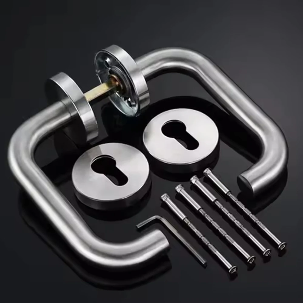 มือจับประตูเหล็กกล้าไร้สนิม 304 มาตรฐานยุโรป แบบท่อกลม มุมฉาก แบบแยกส่วน สำหรับประตูภายในและประตูภายนอก ทนไฟ