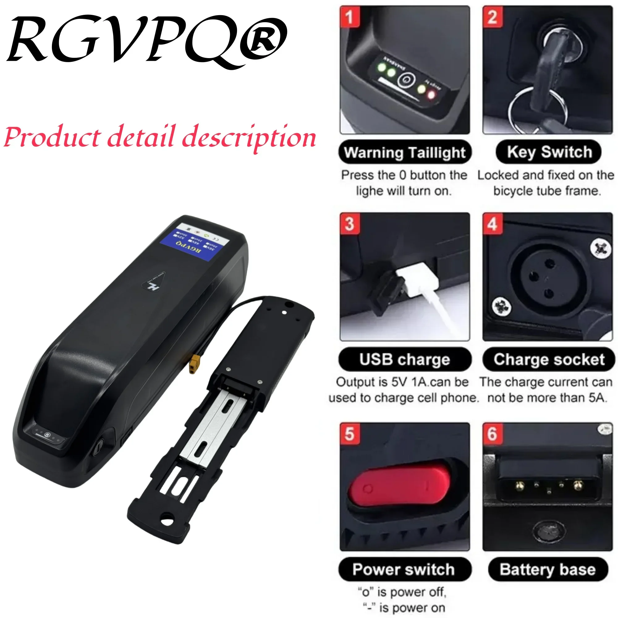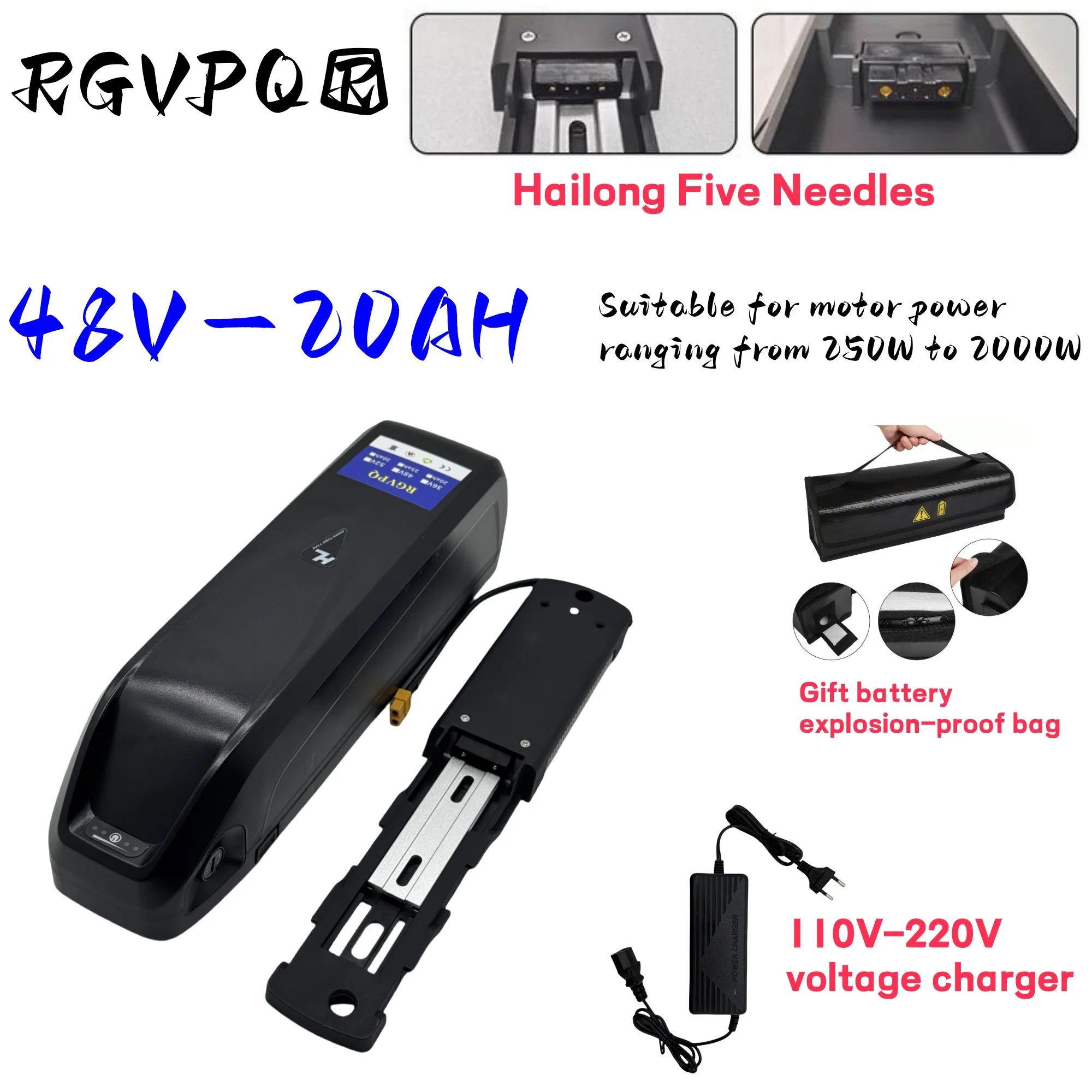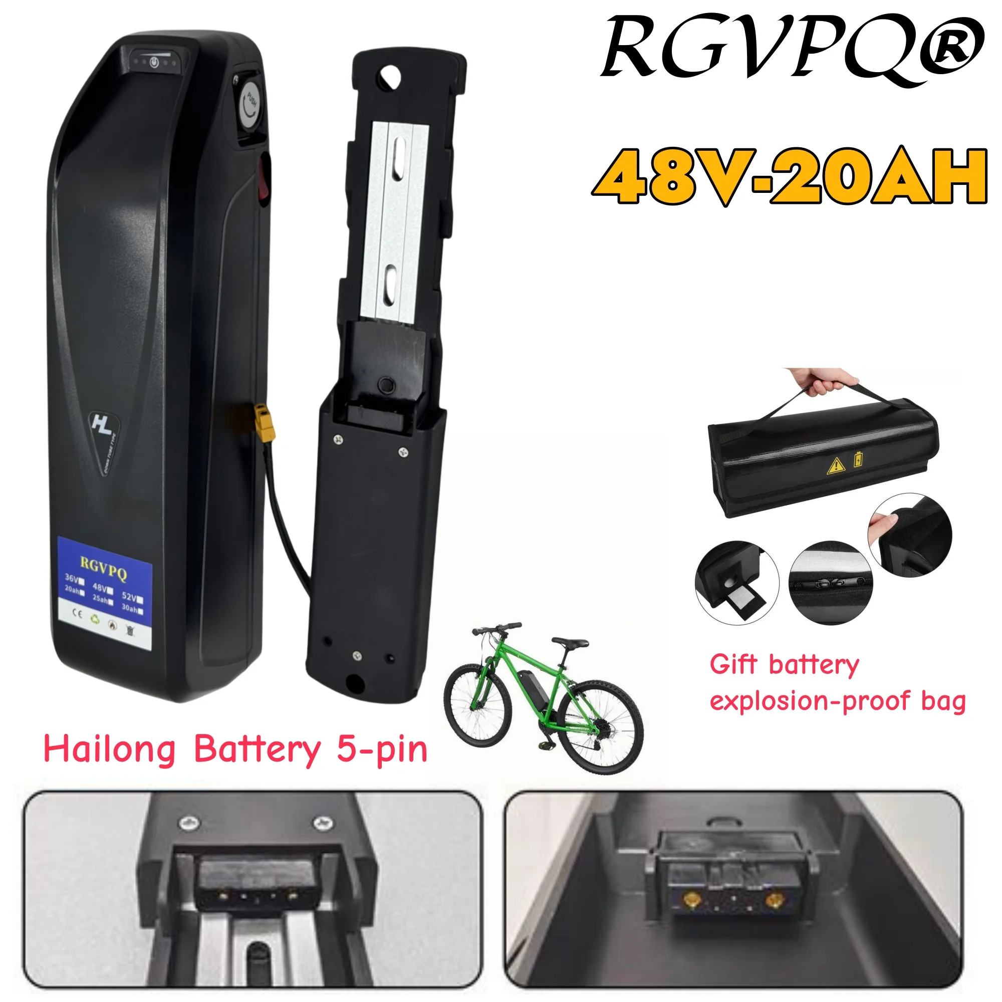 ระบบขนส่งทางอากาศแบบเร็ว แบตเตอรี่ลิเธียม 48V20AH พร้อมระบบล็อคความปลอดภัย รางนำทาง ระบบ BMS ในตัว สำหรับมอเตอร์ 350W500W750W1000W แบตเตอรี่ลิเธียม 18650 แบบ 5 ขา hailong