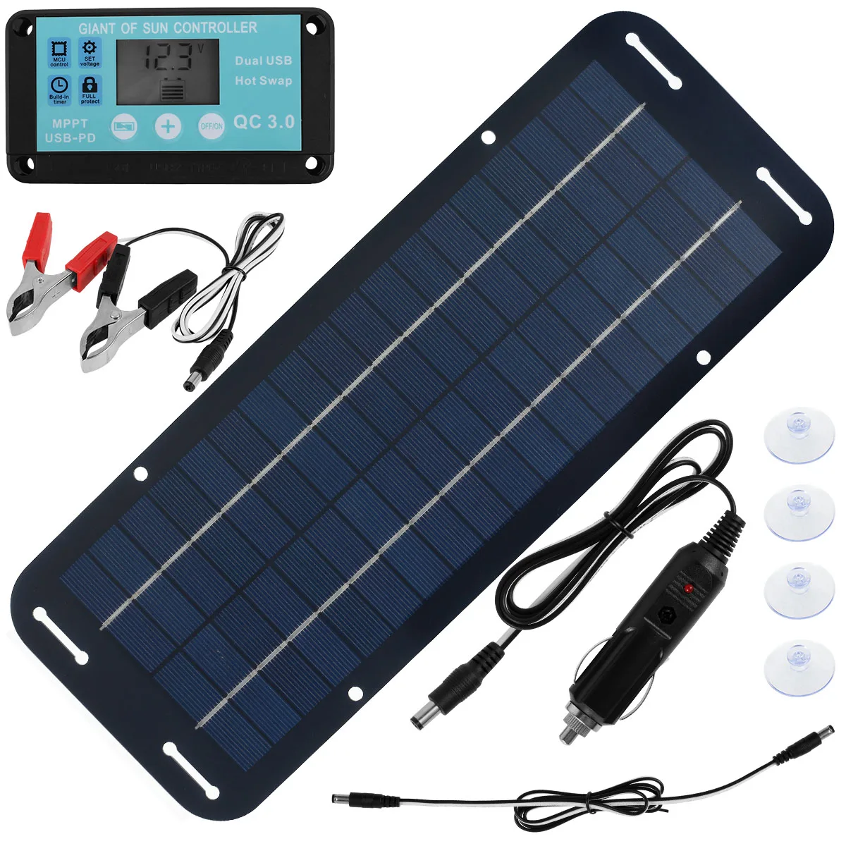 ชุดแผงโซลาร์เซลล์ 12V IP65 กันน้ํา Solar Trickle Charger แบบพกพา Solar Powered Charger Kit ประสิทธิภาพสูงเครื่องชาร์จแบตเตอรี่รถยนต์