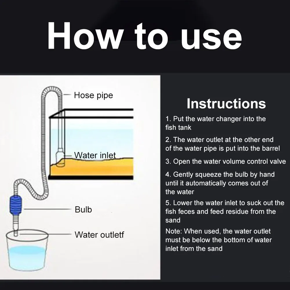 • การทำความสะอาดที่มีประสิทธิภาพ :ถังกาลักน้ำสำหรับดูดที่กรองน้ำและกรวดที่กรองด้วยตนเองเครื่องดูดที่ปลอดภัยถูกออกแบบมาเพื่อทำความสะอาดตู้ปลาของคุณอย่างมีประสิทธิภาพทำให้ง่ายและใช้เวลาน้อยลง