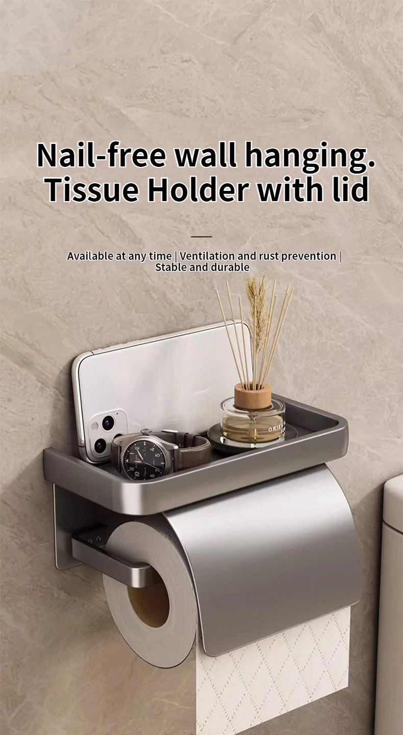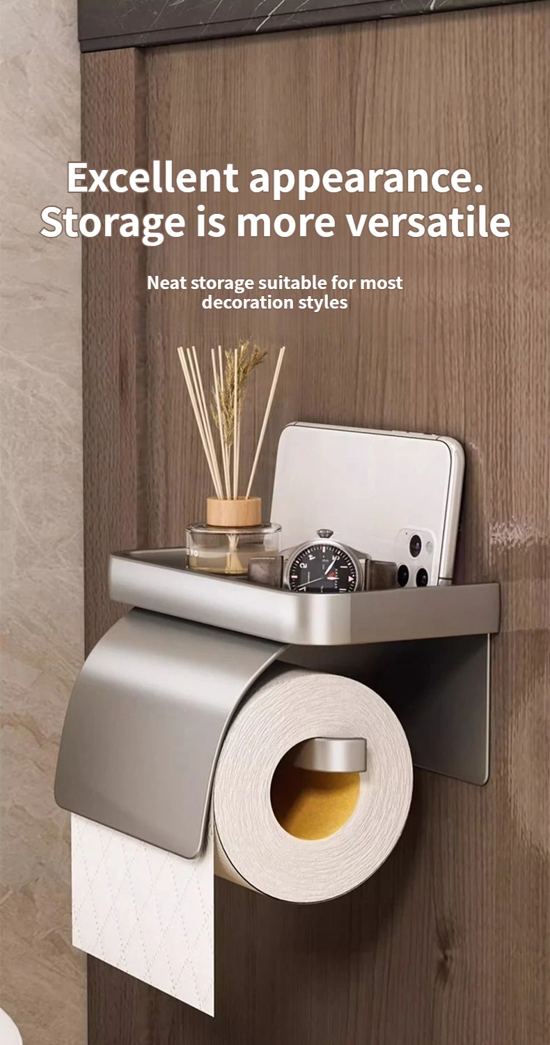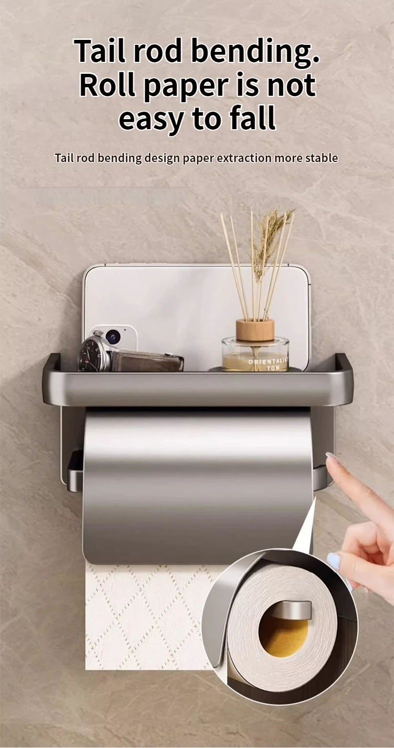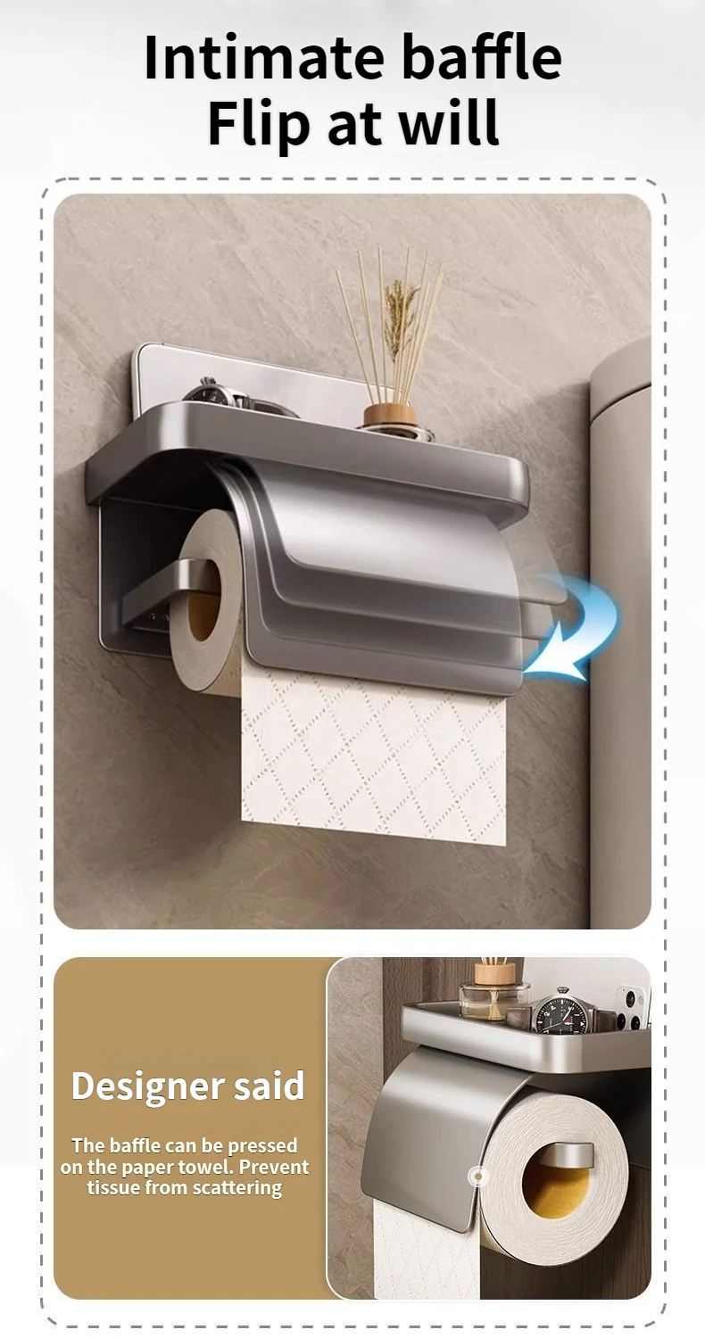ที่ใส่กระดาษชำระแบบติดผนังสองชั้น ไม่ต้องเจาะผนัง พร้อมชั้นวางเก็บของในห้องน้ำ สำหรับกระดาษม้วน