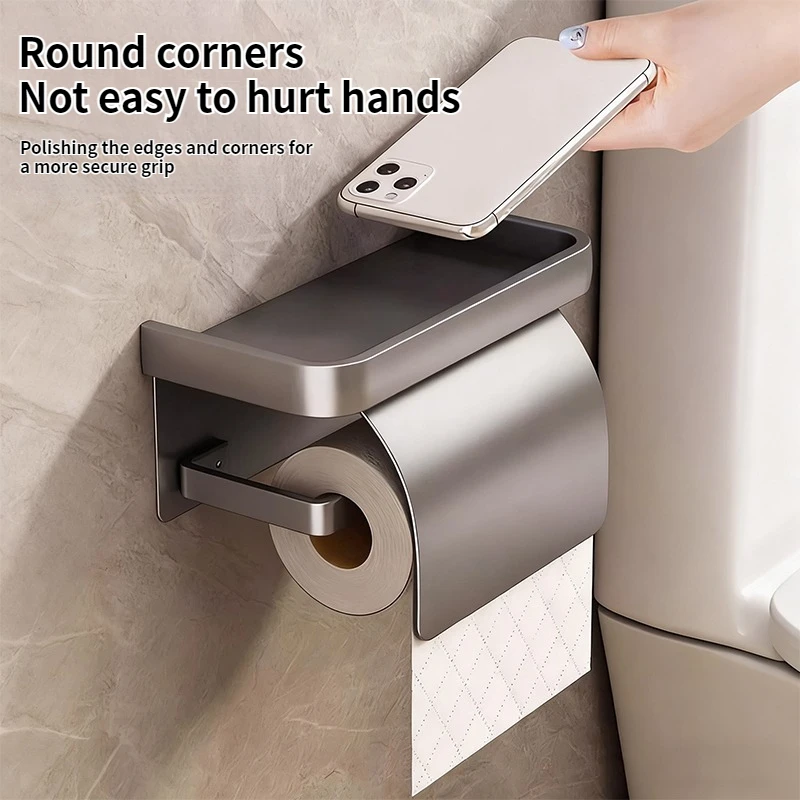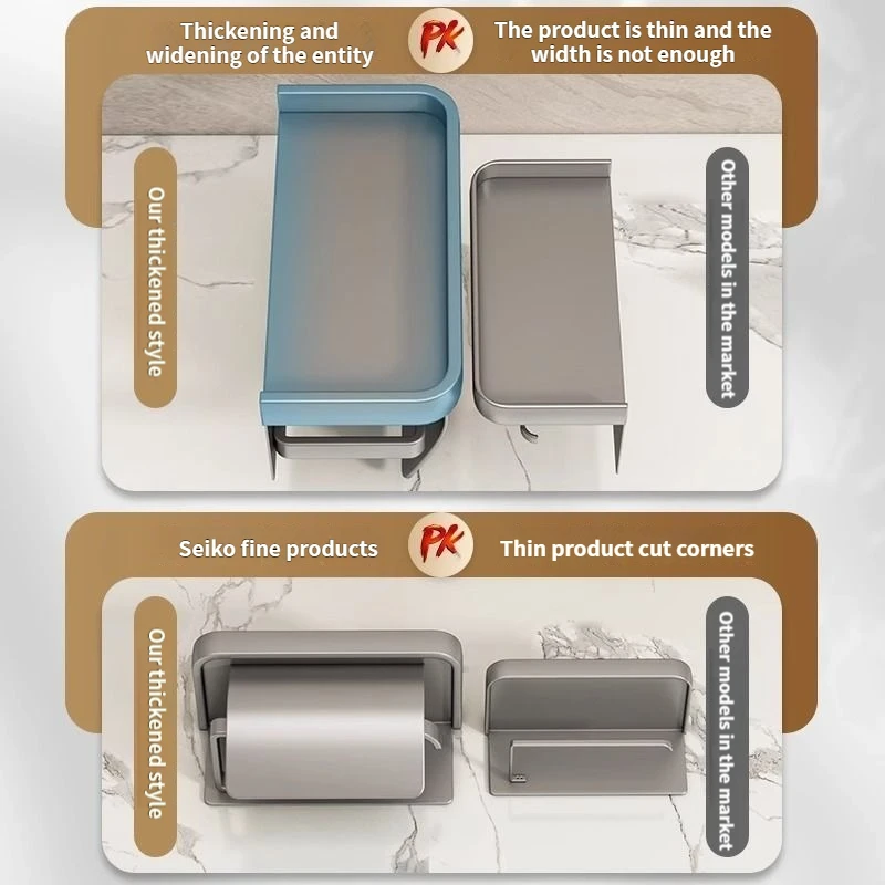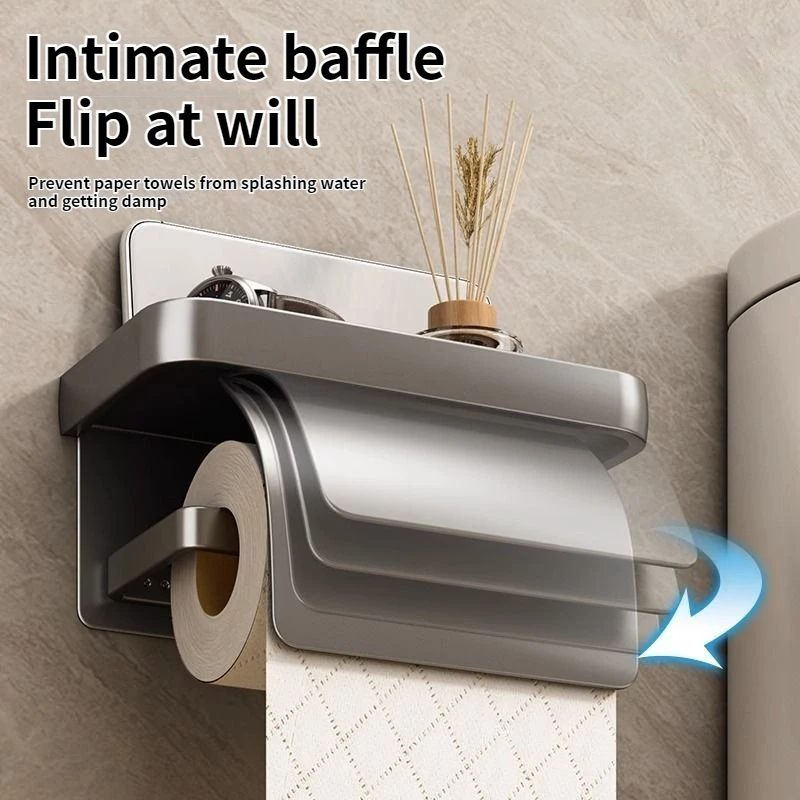 ที่ใส่กระดาษชำระแบบติดผนังสองชั้น ไม่ต้องเจาะผนัง พร้อมชั้นวางเก็บของในห้องน้ำ สำหรับกระดาษม้วน