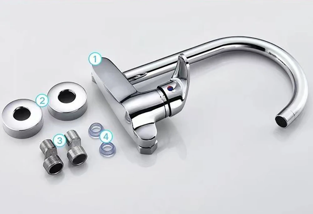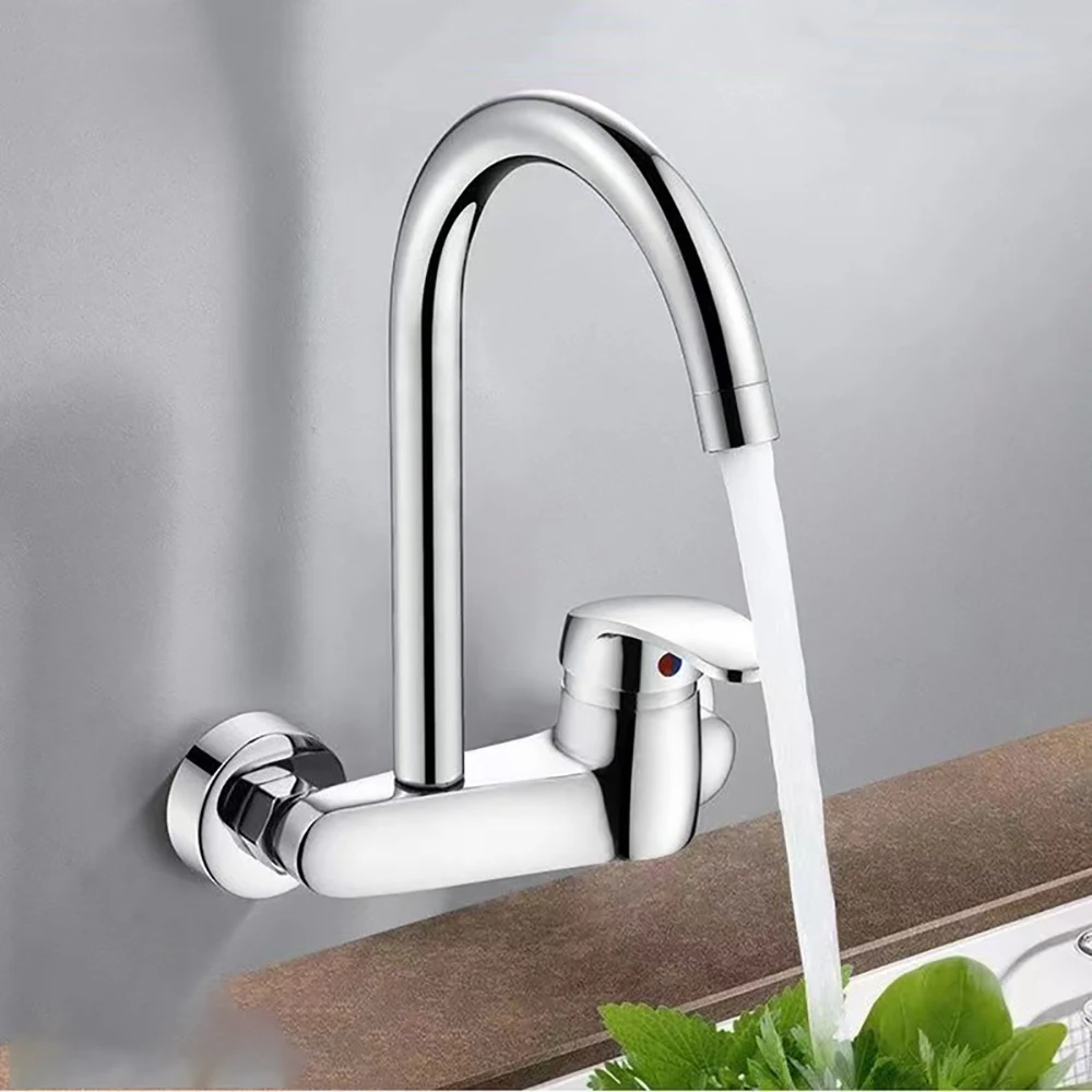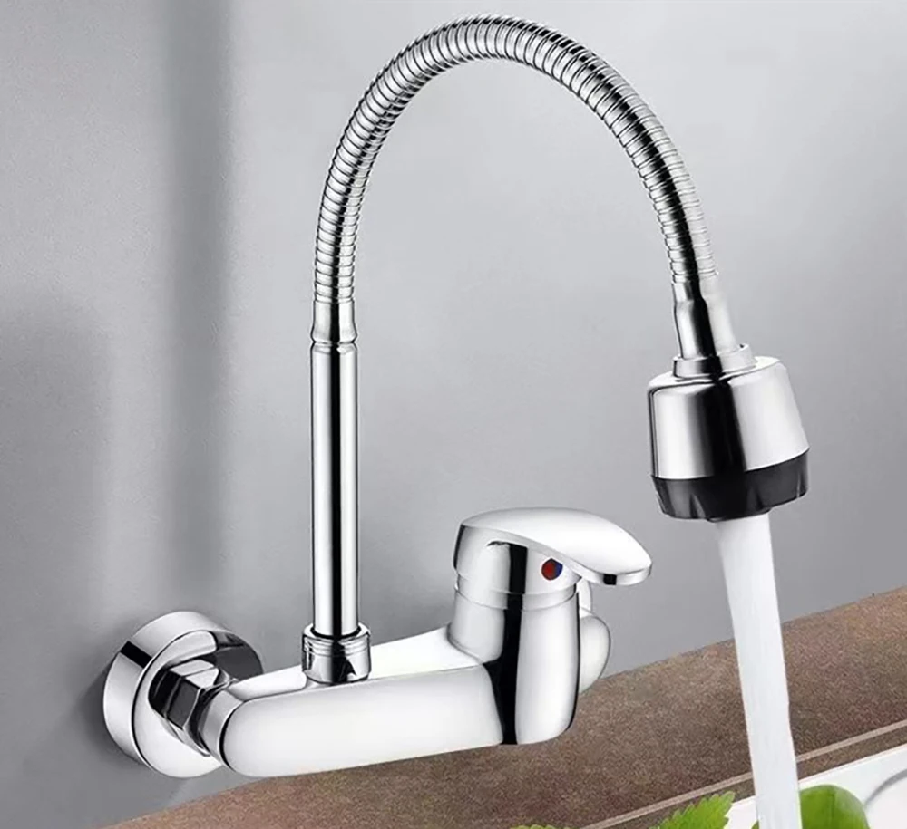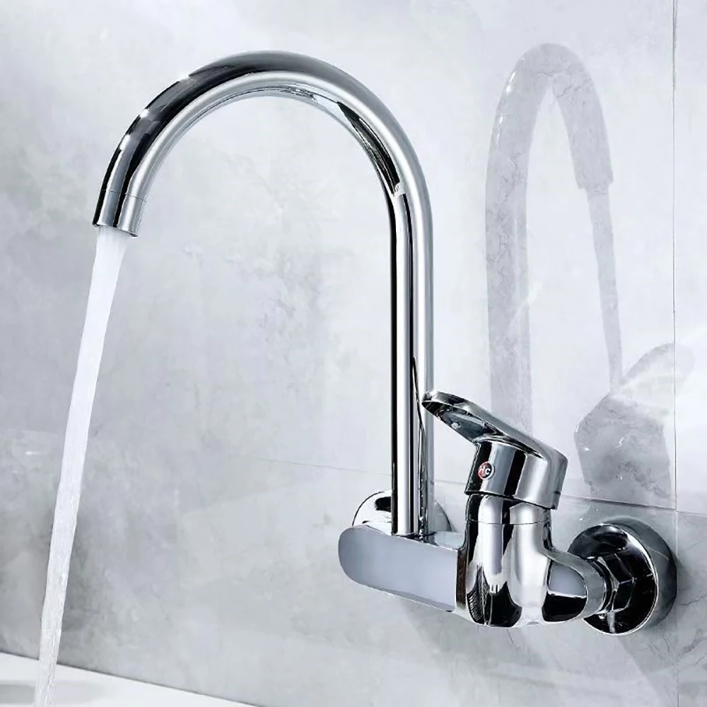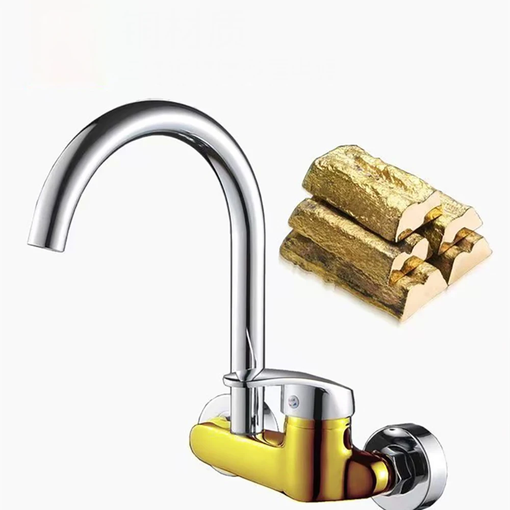 ทองเหลืองห้องครัวผนังก๊อกน้ําร้อนและเย็นอ่างล้างหน้าวาล์วผสมก๊อกน้ําสากล