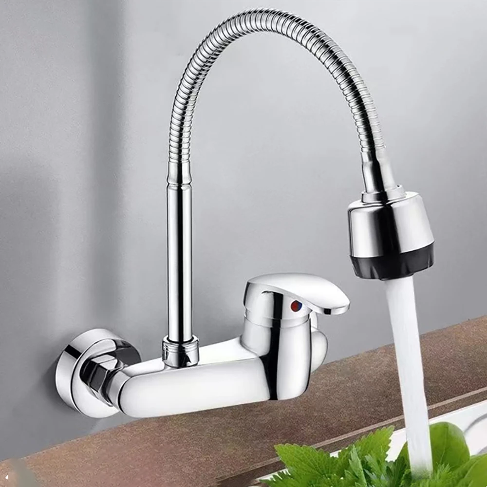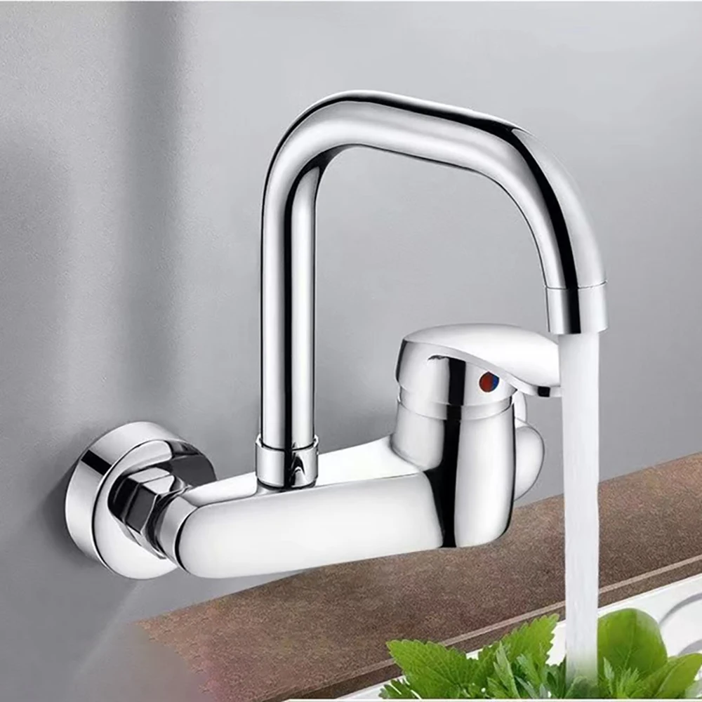ทองเหลืองห้องครัวผนังก๊อกน้ําร้อนและเย็นอ่างล้างหน้าวาล์วผสมก๊อกน้ําสากล
