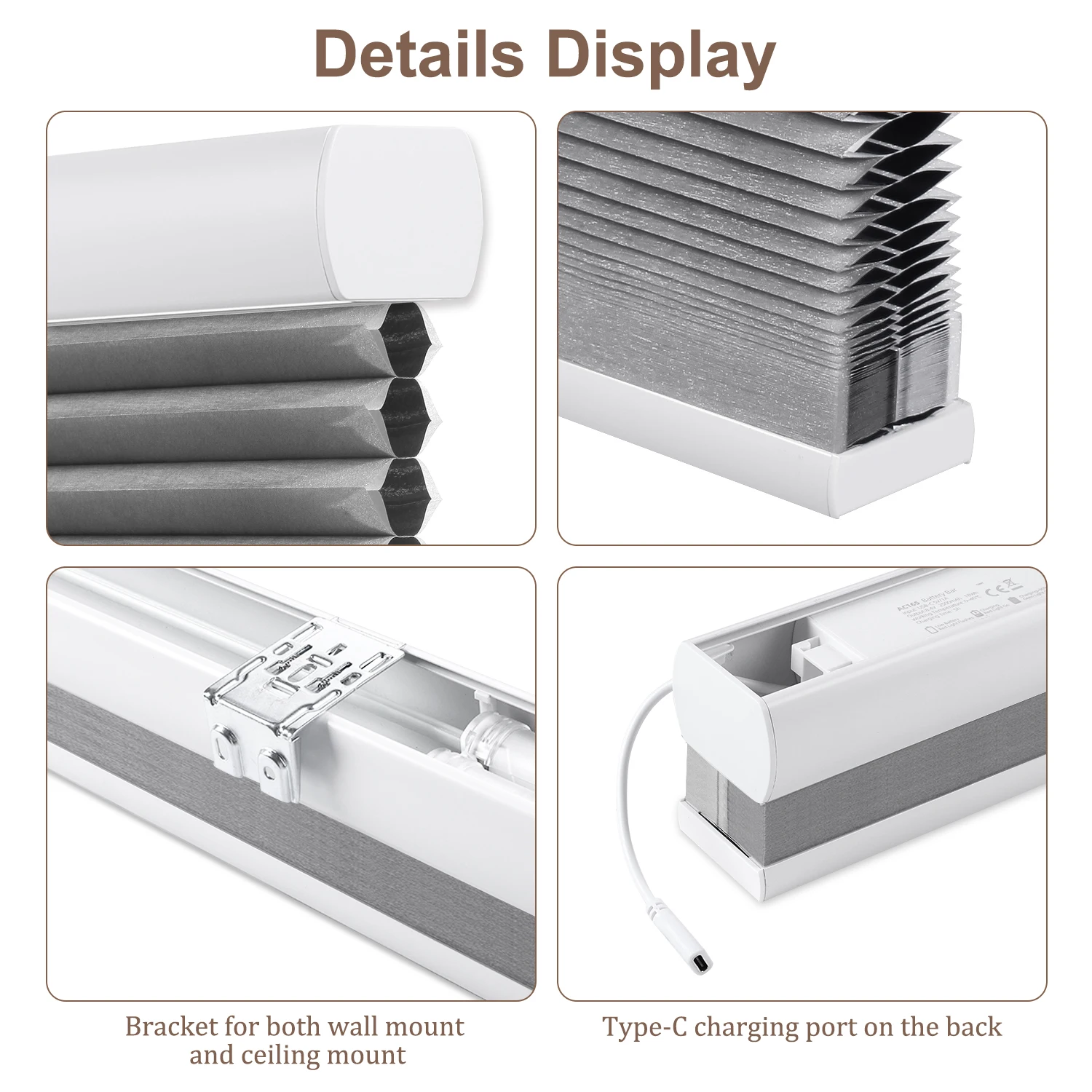 ม่านม้วนเซลลูลาร์แบบมอเตอร์ ม่านรังผึ้งอัจฉริยะ ควบคุมด้วย Alexa, Google Home และรีโมท TUYA ขนาดสั่งทำได้ ผ้าคลุมหน้าต่าง