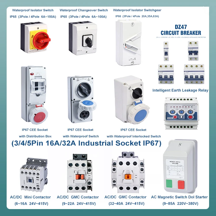 IP67สวิทช์ไฟฟ้า CEE ซ็อกเก็ต Miniature Circuit Breaker Protection IP66กันน้ำล็อคกล่องกระจาย จาก 1 รีวิว