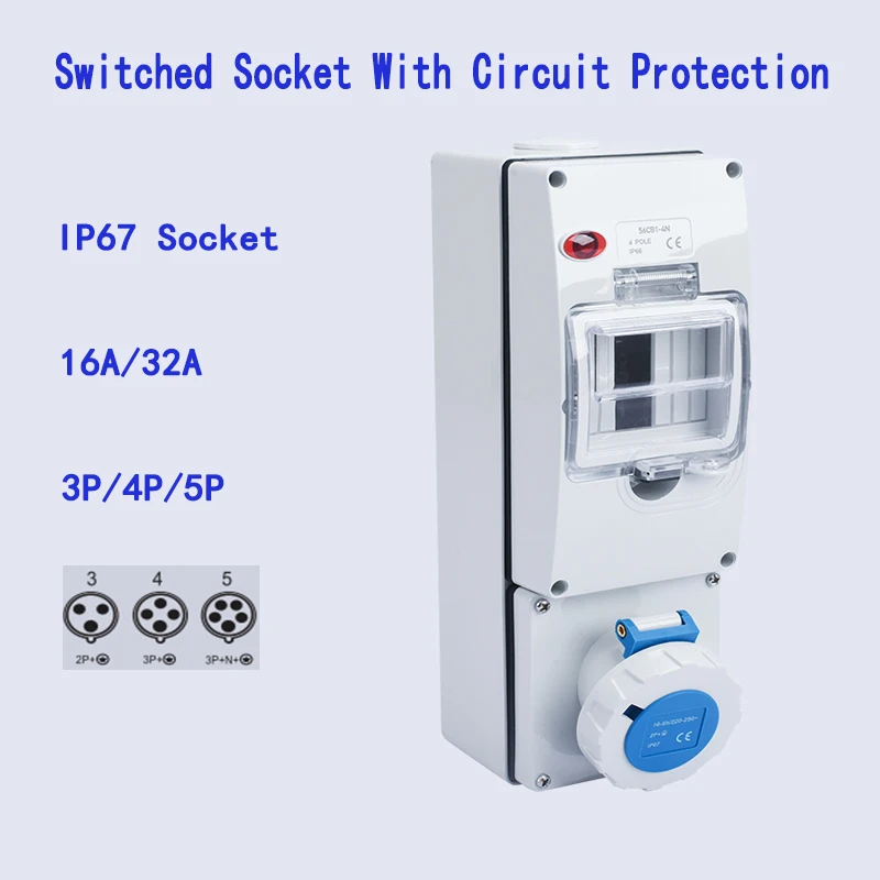 IP67สวิทช์ไฟฟ้า CEE ซ็อกเก็ต Miniature Circuit Breaker Protection IP66กันน้ำล็อคกล่องกระจาย