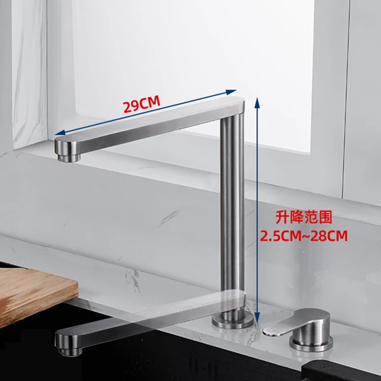 304 ก๊อกน้ําอ่างล้างจานสแตนเลสซ่อนยกพับก๊อกน้ําห้องครัวร้อนและเย็นผสมน้ําแยกอ่างล้างจาน TAP Dual หลุม