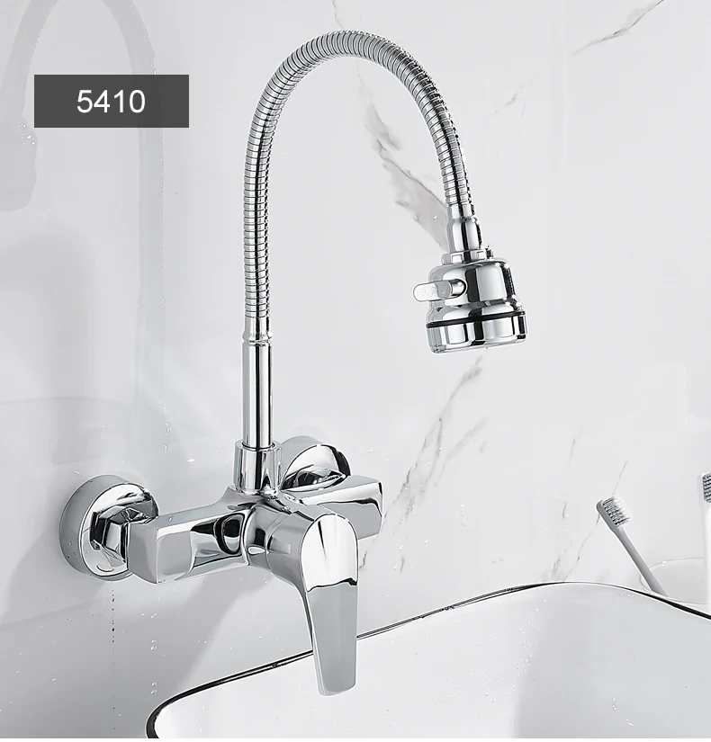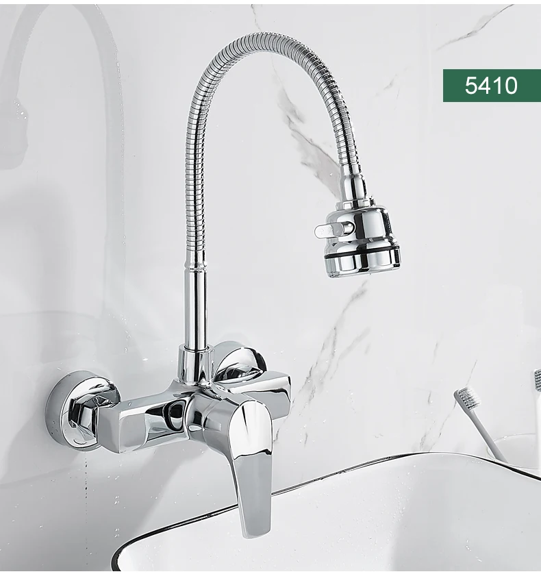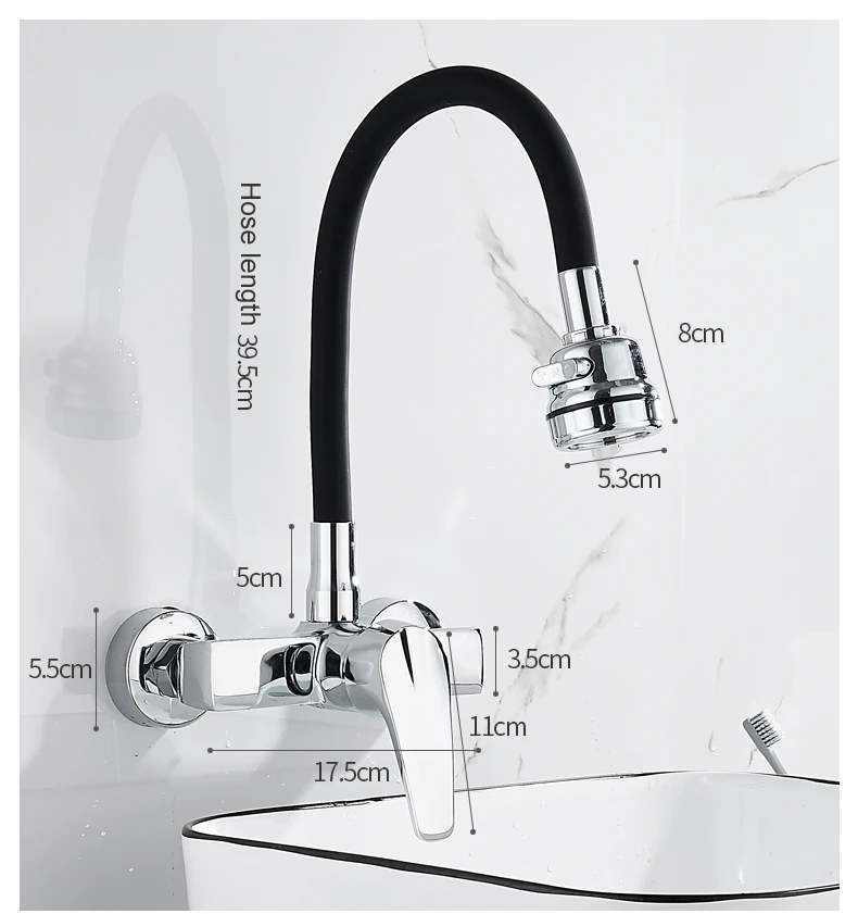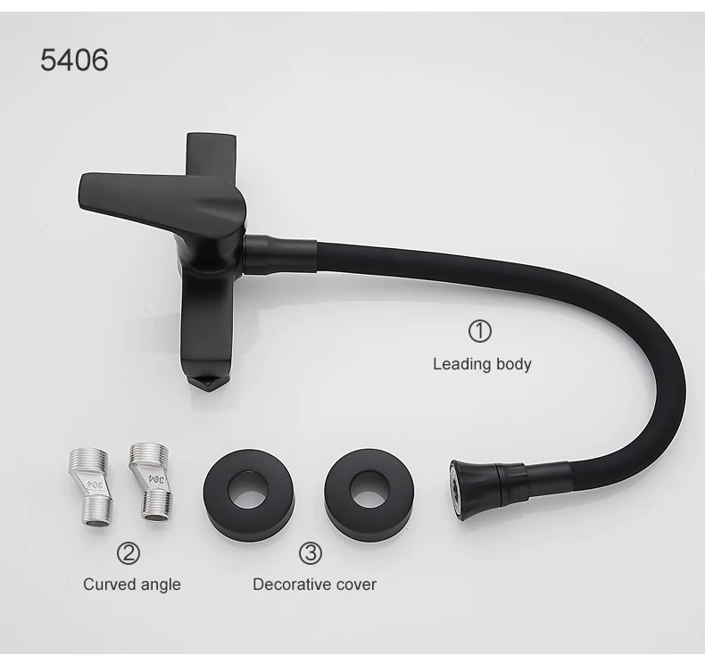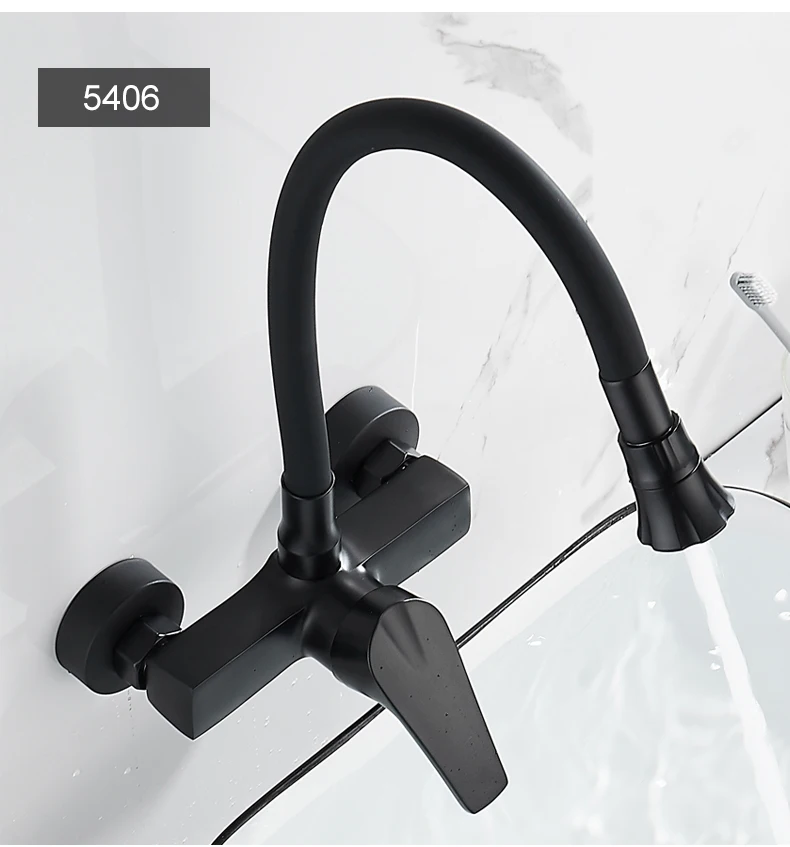 ELLEN Wall Mount ก๊อกน้ําอ่างล้างจานร้อนเย็นอ่างล้างจาน TAP 2 หลุมสีดําก๊อกน้ําหมุน 360 องศา ELK5400
