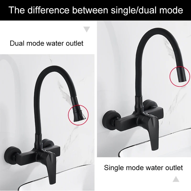 ELLEN Wall Mount ก๊อกน้ําอ่างล้างจานร้อนเย็นอ่างล้างจาน TAP 2 หลุมสีดําก๊อกน้ําหมุน 360 องศา ELK5400