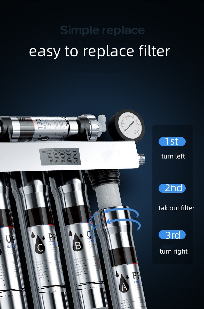 EIREE เครื่องกรองน้ำสแตนเลส 5 ขั้นตอนพร้อมจอแสดงผลดิจิตอลและเกจวัดความดันใต้อ่างล้างจานระบบกรองน้ำเครื่องกรองน้ำ