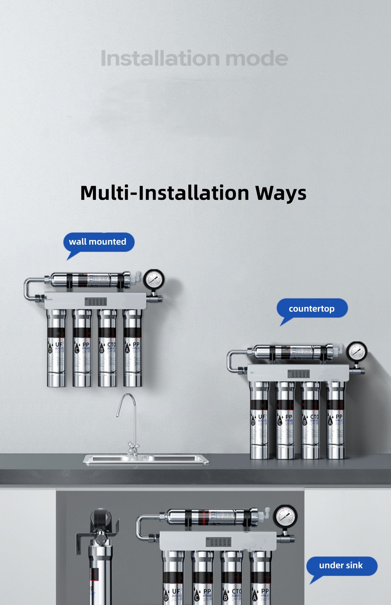 under sink, wall mounted, countertop |